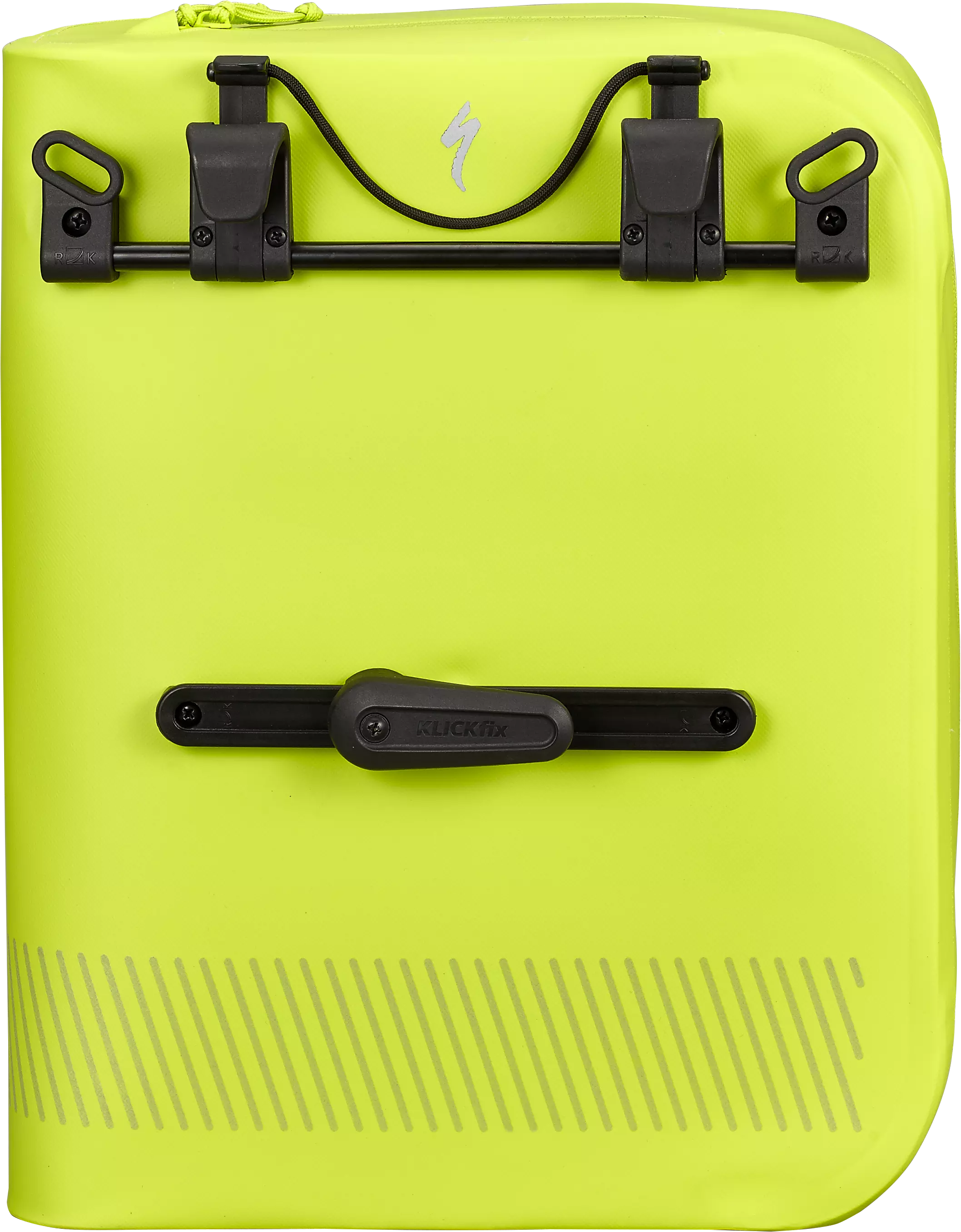 Klickfix mounting system lets you load the bags on and off your bike quickly for easy transitions, freeing up the top of the rack for additional carrying.