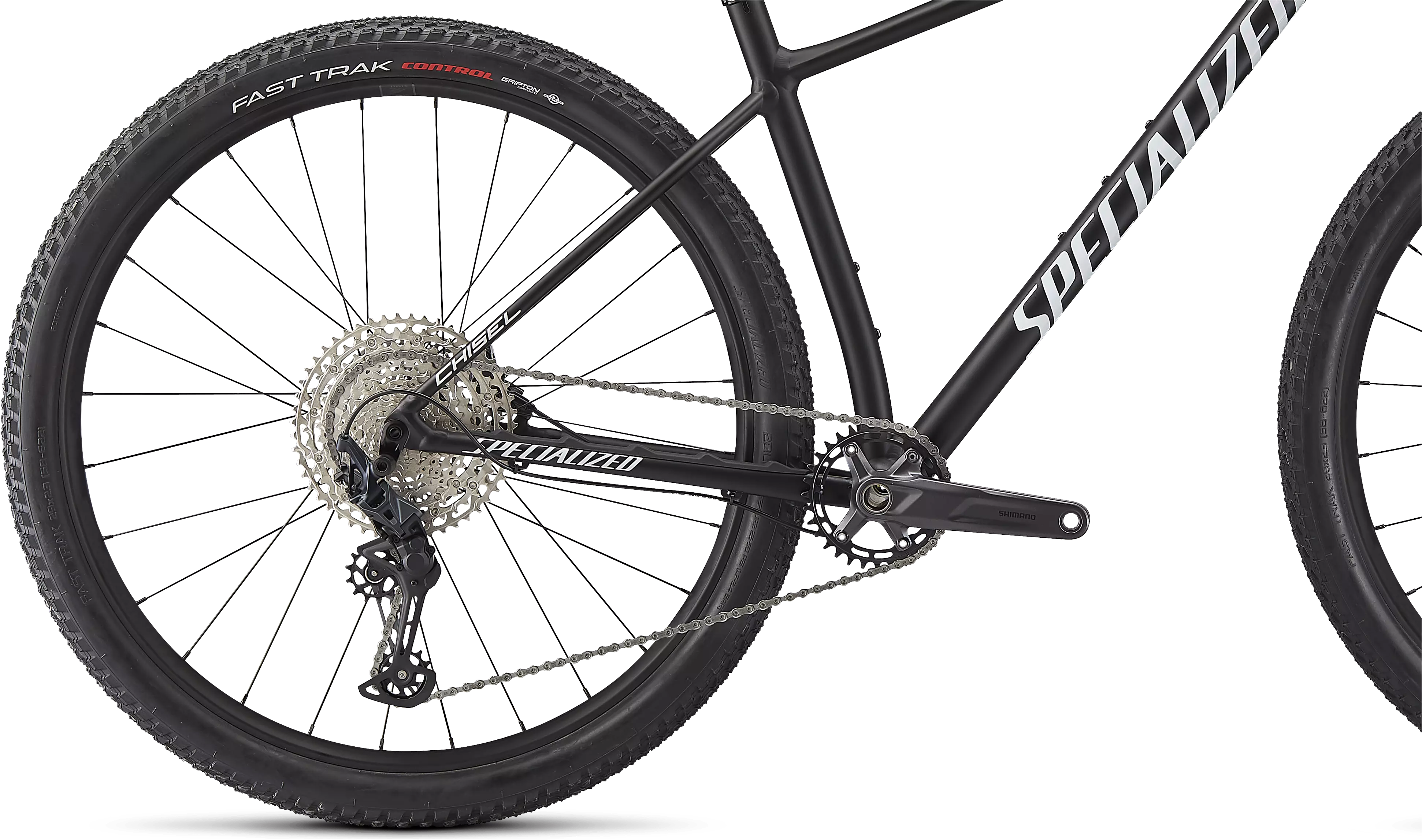 Esta Chisel viene equipada con la transmisión SLC 1x12 de Shimano y potentes frenos de disco hidráulicos M6100, horquilla RockShox Judy Gold de 100 mm (tamaño XS: 80 mm) y llantas de alumnio de 25 mm de ancho interno con cubiertas Fast Track Control de 2.3.