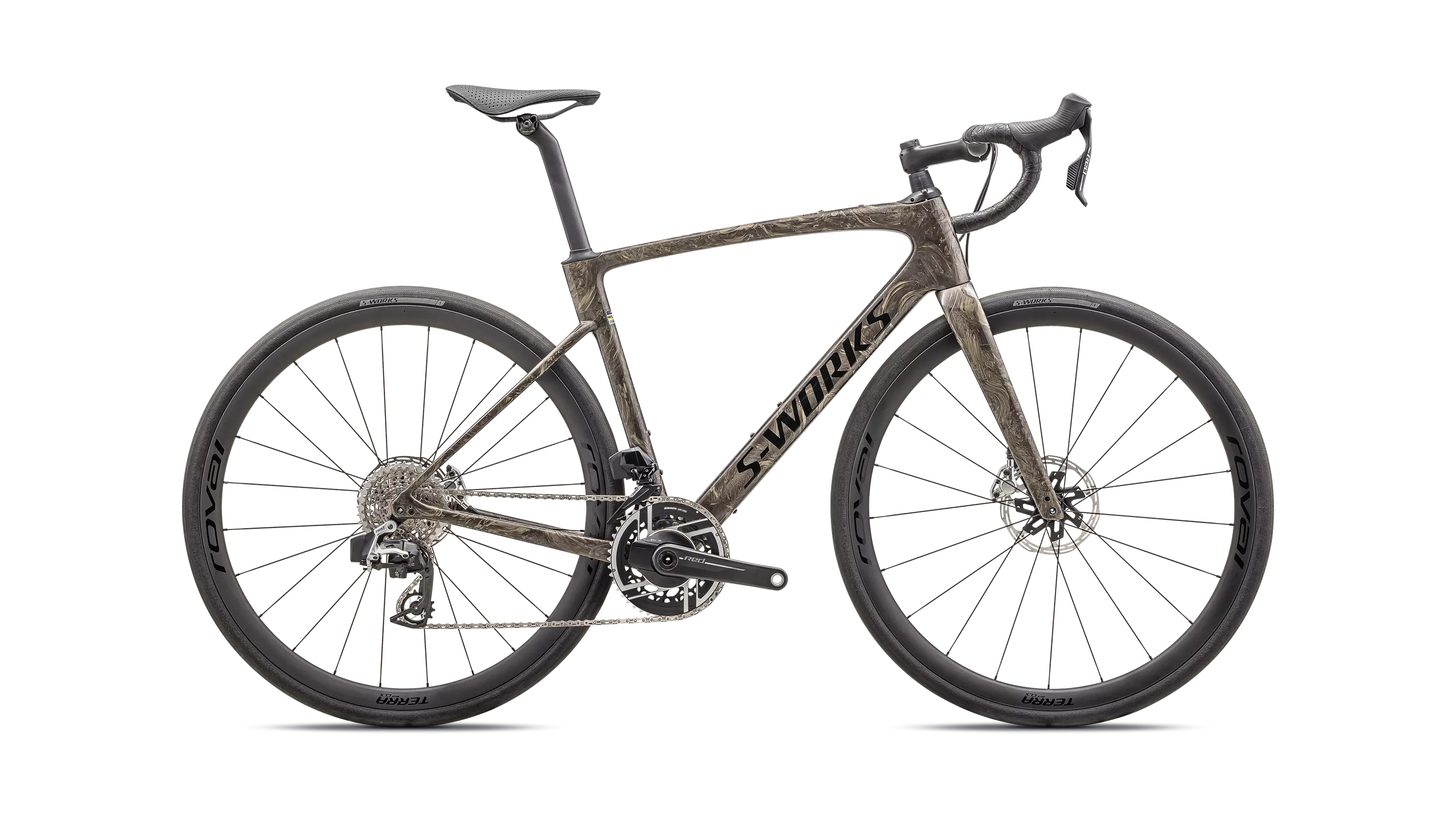 Das geschmeidigste Rennrad der Welt trifft jetzt auf die SRAM RED AXS Komplettgruppe mit Leistungsmessung – die leichteste elektronische Gruppe aller Zeiten – und einen tubeless-ready Roval Terra CLX II Laufradsatz. Das ist die leichteste und schnellste Kombination für wirklich anspruchsvolle Etappen.