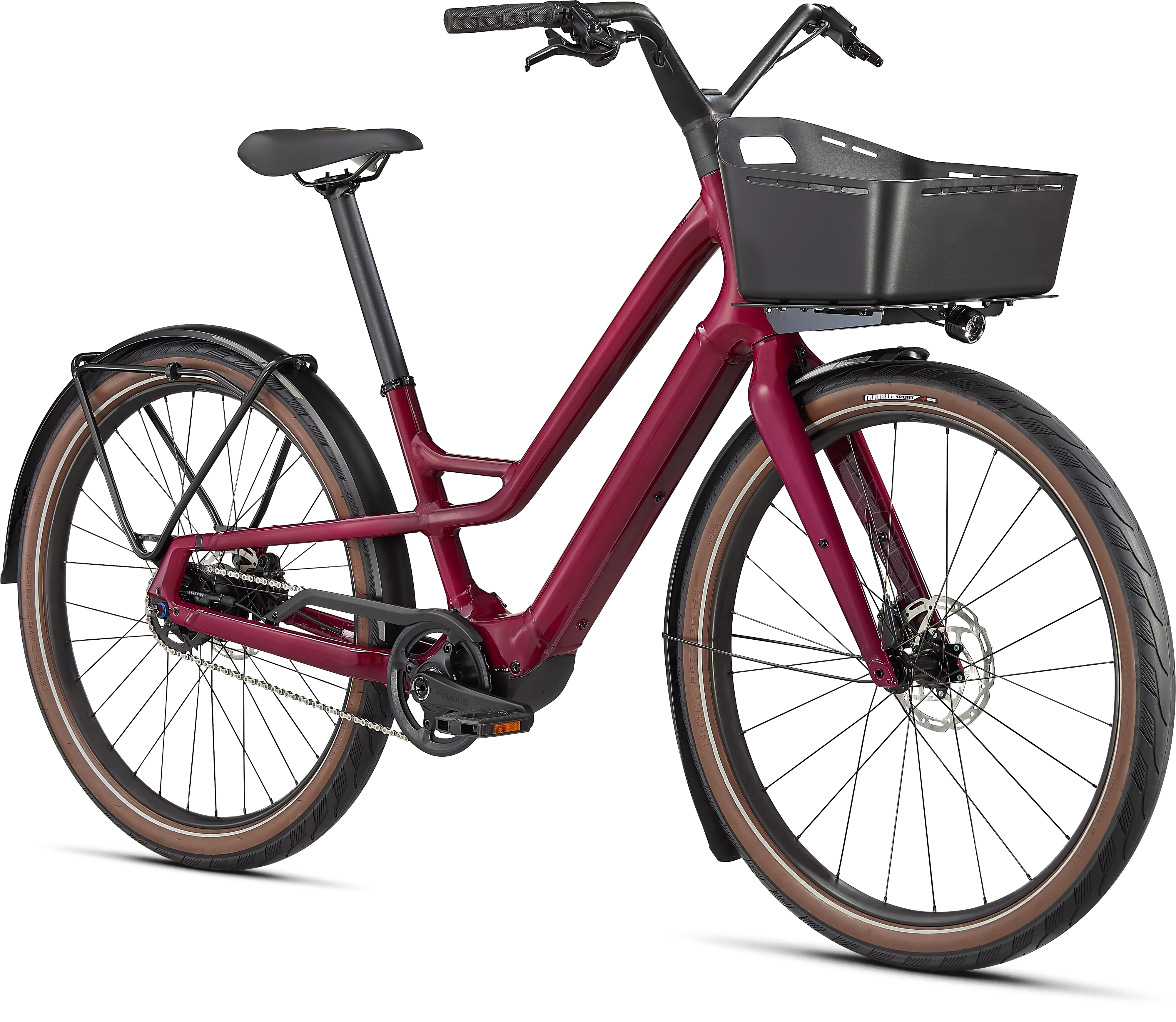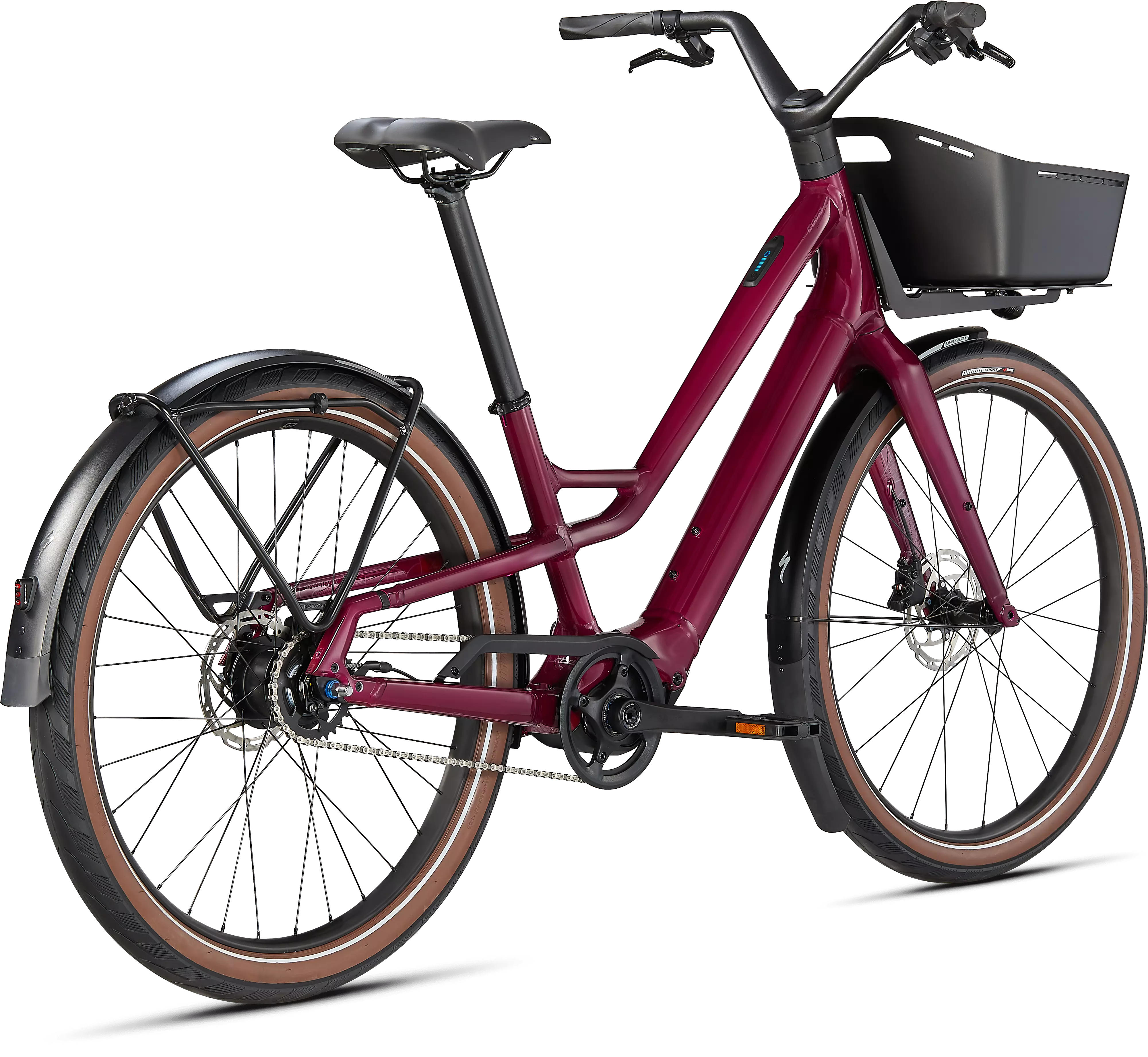 5-speed Nexus Internal Gear Hub and chain drive for shifting when stopped, extended bike performance, and reduced at-home bike maintenance.