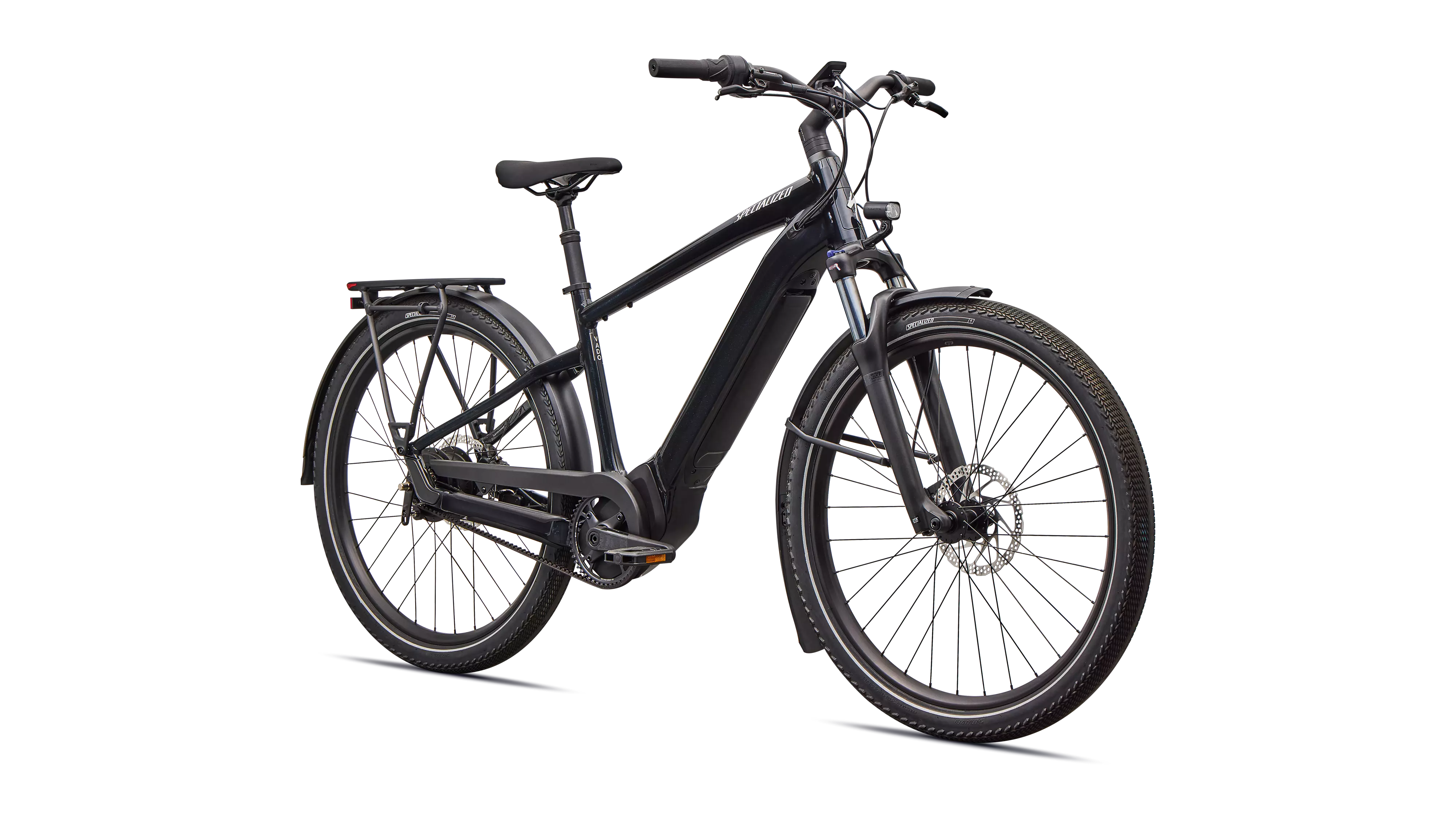Das Turbo Vado ist mit unseren DRYTECH-Schutzblechen, LED-Fahrradlichtern und unserem HD-Gepäckträger ausgestattet, auf dem du bis zu 27 kg Gepäck transportieren oder einen Kindersitz montieren kannst. Das Turbo Vado ist für das Ziehen von Anhängern geeignet, die mithilfe von Steckachsen angebracht werden.