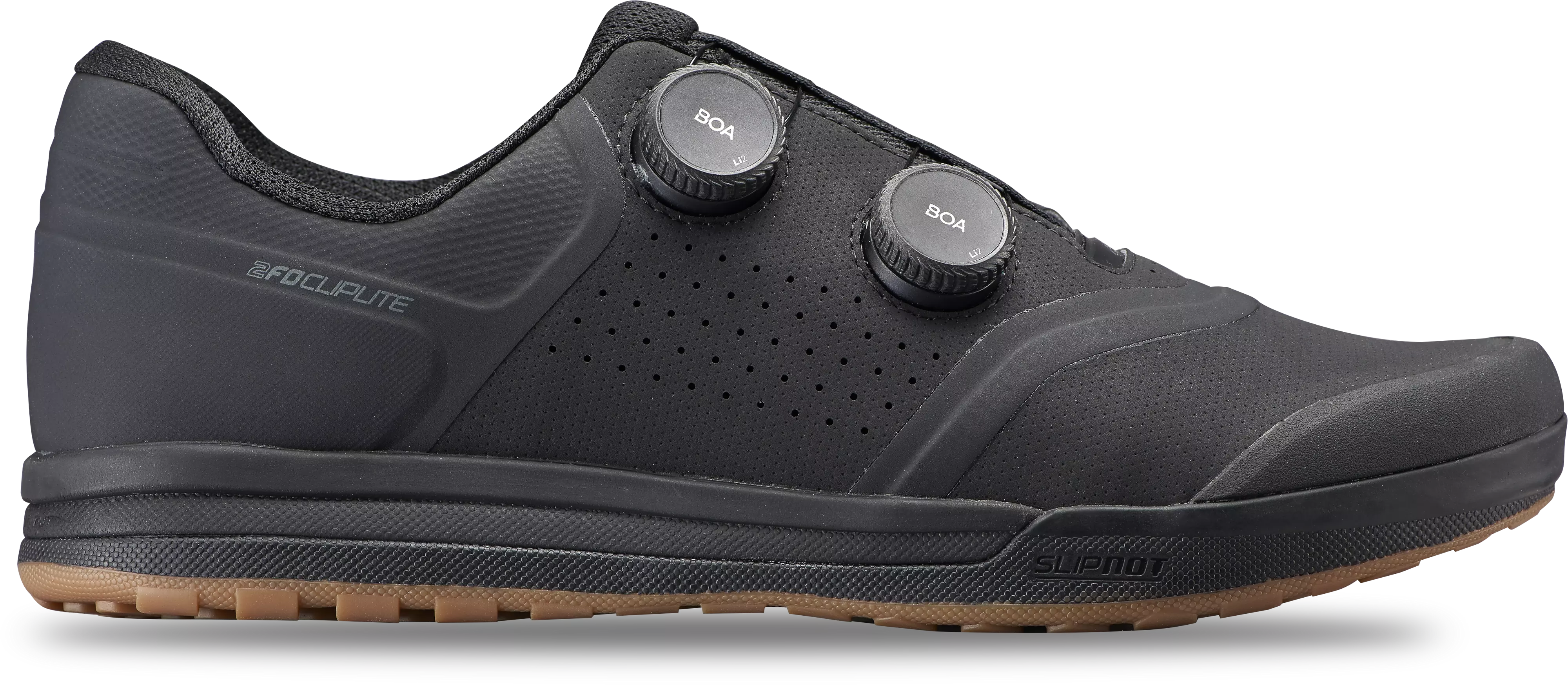 The 2FO Cliplite puts precision fit at your toe tips, providing unparalleled pedal input for on-trail control. The micro-adjustable BOA® Li2 dials combined with a welded upper provide a ridiculously comfortable fit. Built on a cushioned EVA foam midsole and relaxed fit last, the 2FO Cliplite keeps you locked in and cooled down for all-day riding without sacrificing off-the-bike comfort and style. The shoe rides on our SlipNot™ FG rubber sole delivering best-in-class pedal grip and connection when hitting full send. The 2FO Cliplite is perfectly adjusted for all-out trail speed.