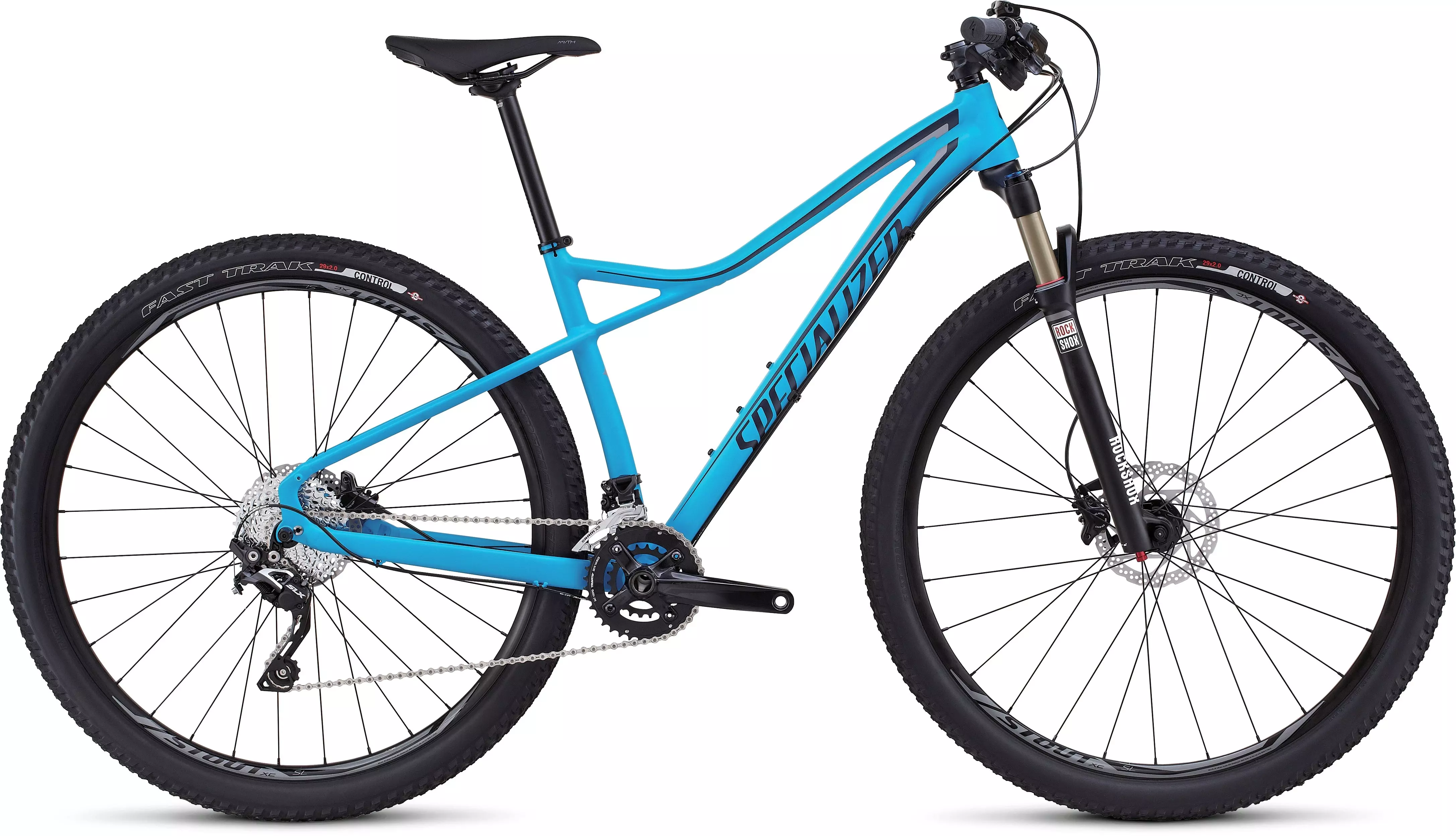 Specialized M4 Aluminum, Women's Competitive XC 29 Geometry, smooth welds, integrated head tube, forged post-mount 160mm dropouts, replaceable alloy derailleur hanger