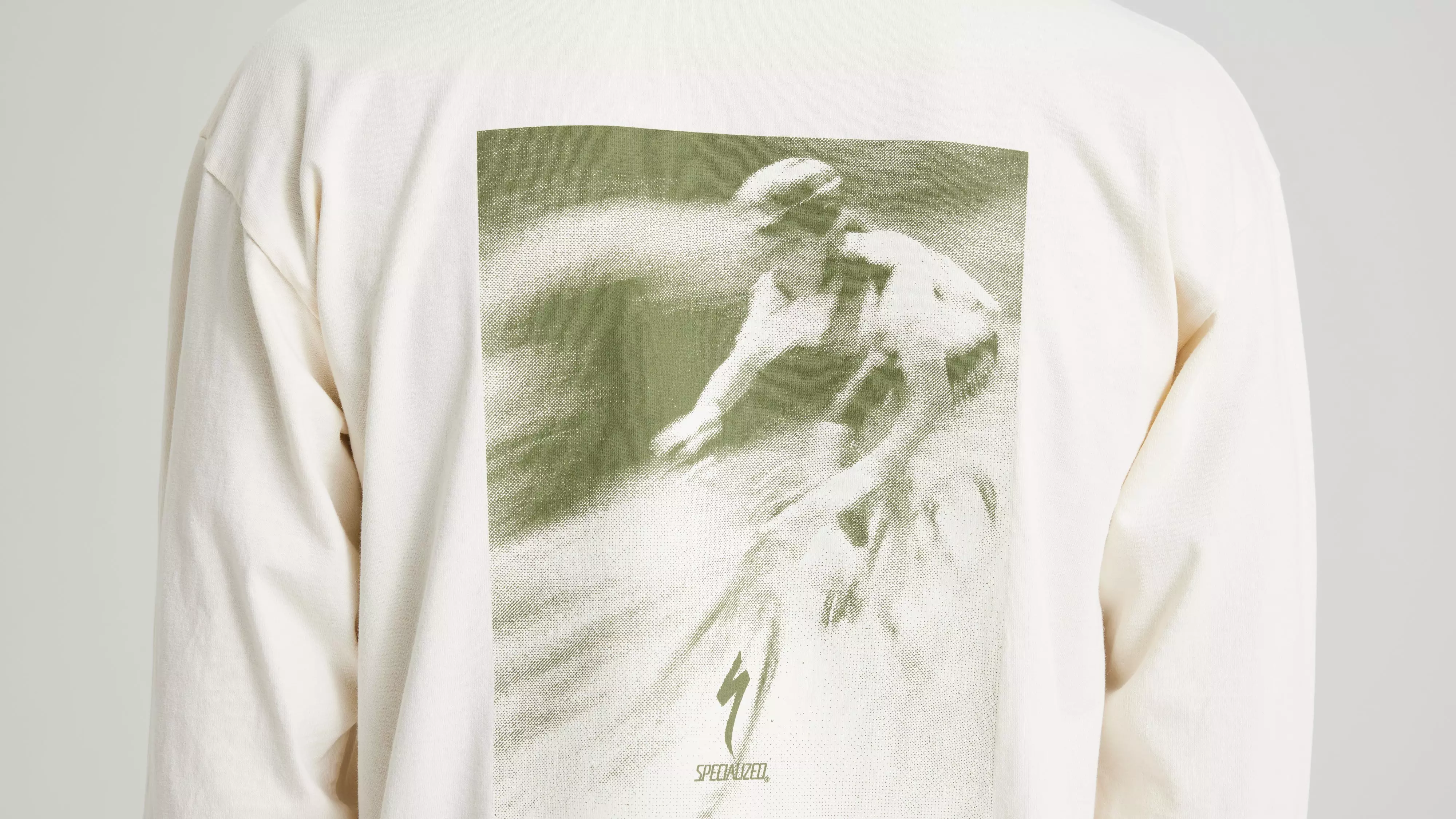 Screen-printed graphic on the left chest and on the back.