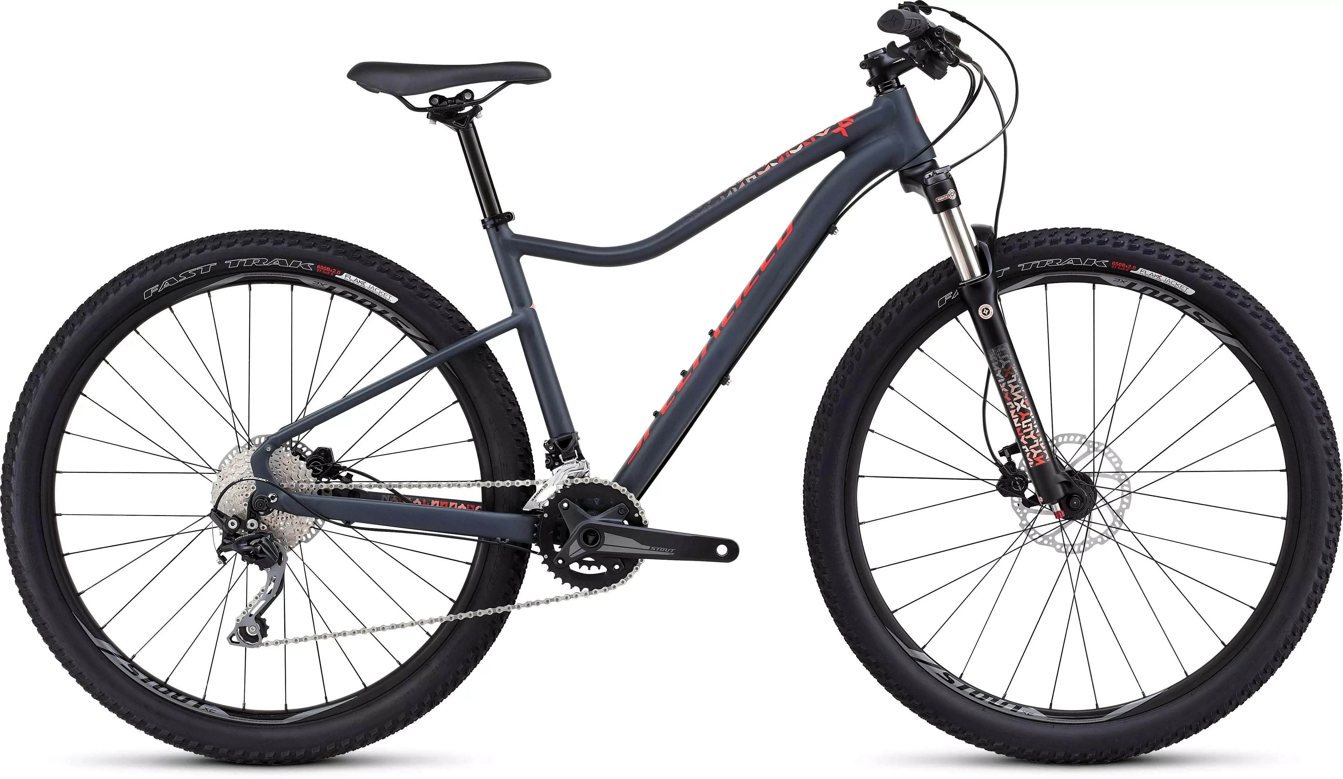 Specialized A1 SL Premium Aluminum, Women's Sport Trail 650b Geometry, women's double-butted tube sets, tapered steerer, forged dropouts, replaceable alloy derailleur hanger