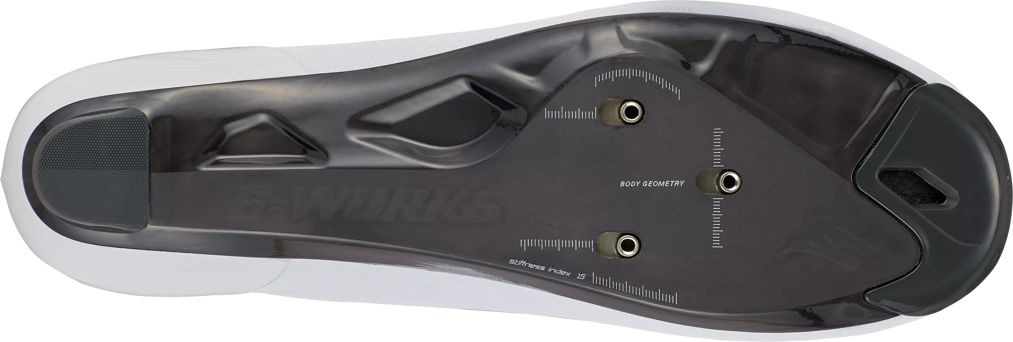 The foundation for all this is the technology pioneered for the S-Works 7. Our Powerline™ carbon outsole—our lightest and stiffest outsole ever—creates the ideal platform for power delivery. Our PadLock™ heel comfortably holds the rear of your foot, while the engineered mesh upper delivers a stable yet supple hold for all-day power delivery.
