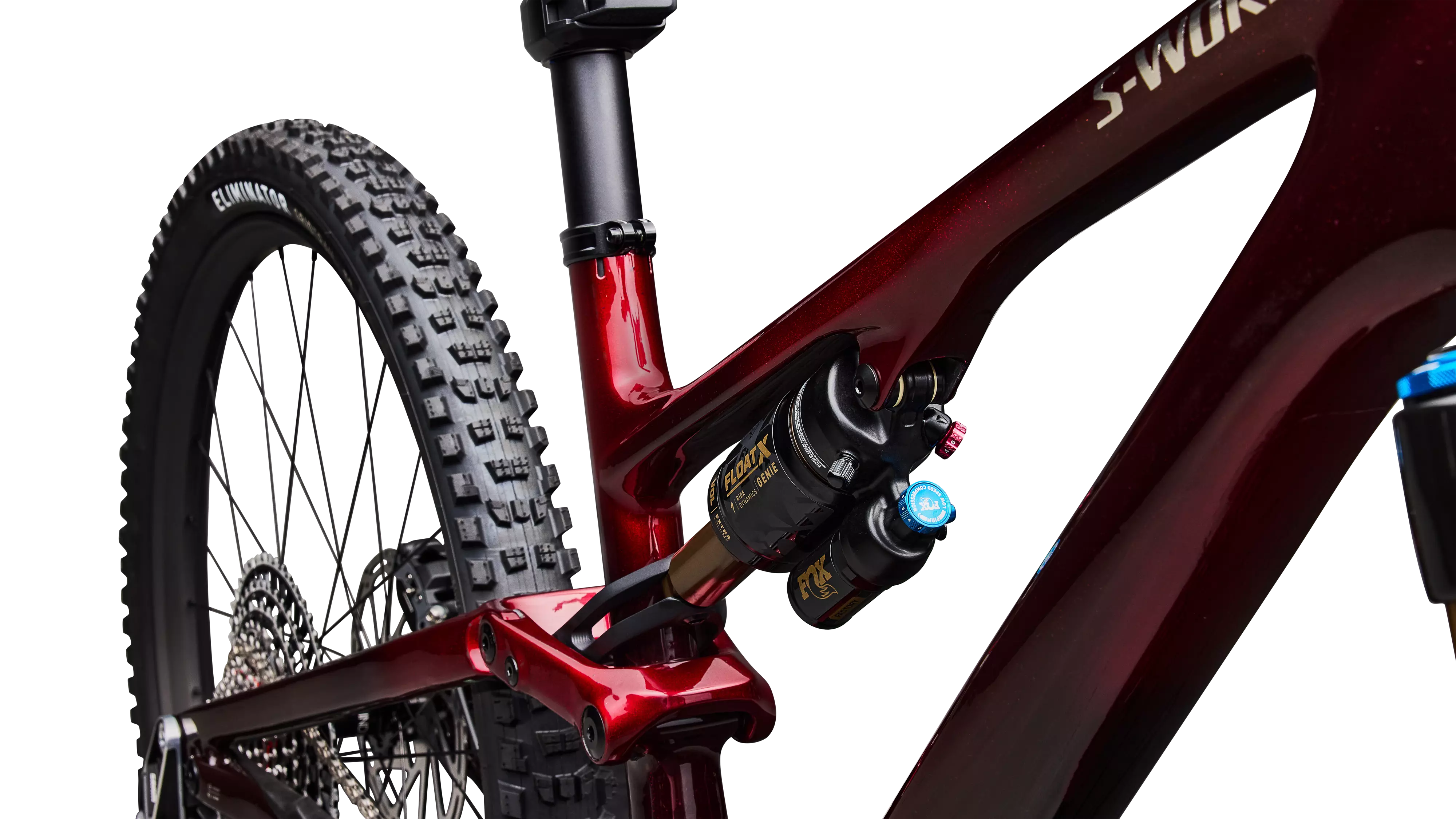 Ride Dynamics tuned FOX FLOAT X Factory with Specialized GENIE Shock Tech. Highly adjustable 2-position open and firm mode with 3-position open mode compression adjuster