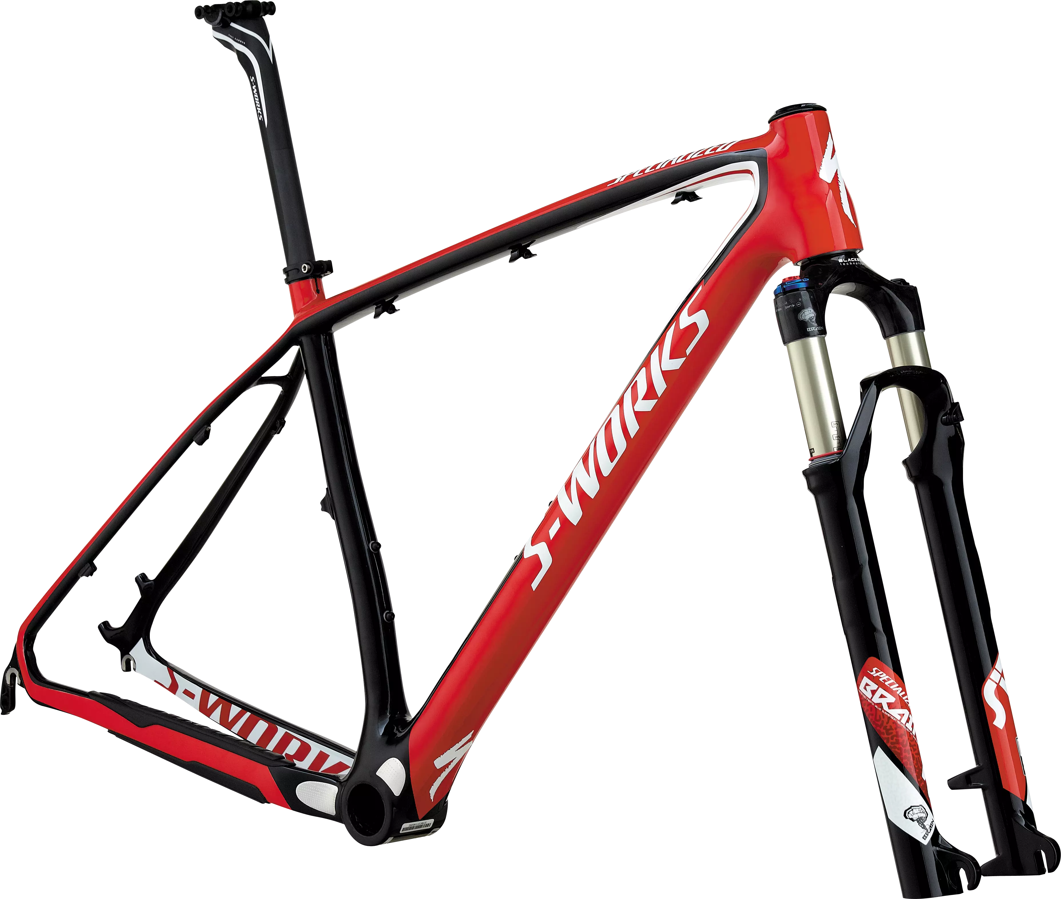 Custom RockShox SID World Cup 29 Brain, inertia valve damper, air spring, tapered carbon steerer, top-mount Brain Fade adj. and rebound adj., QR, S: 80mm travel, Others 90mm