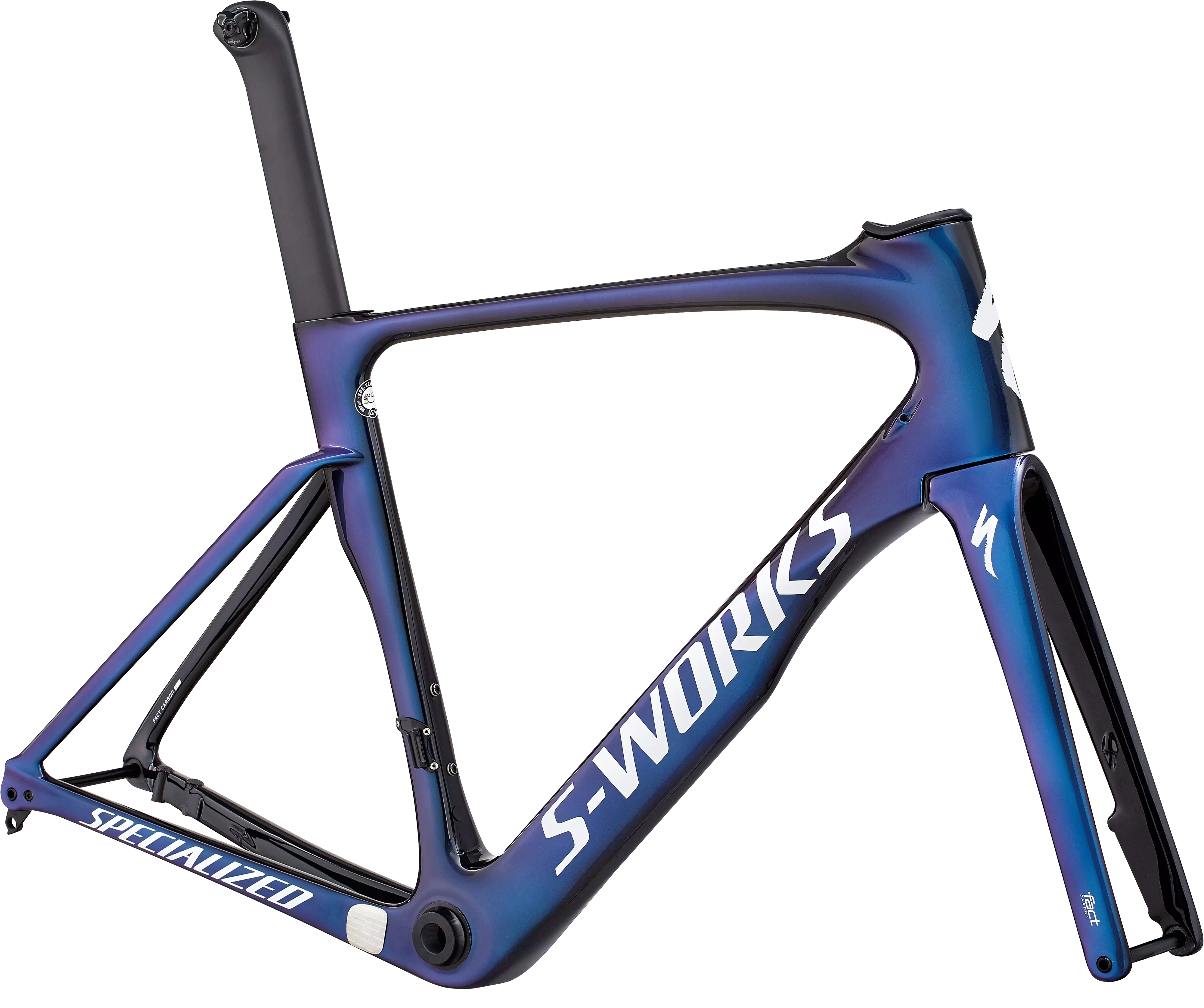 S-Works FACT 11r carbon, Rider-First Engineered™, Win Tunnel Engineered, internal cable routing, 12x142mm thru-axle, carbon OSBB, flat disc mount