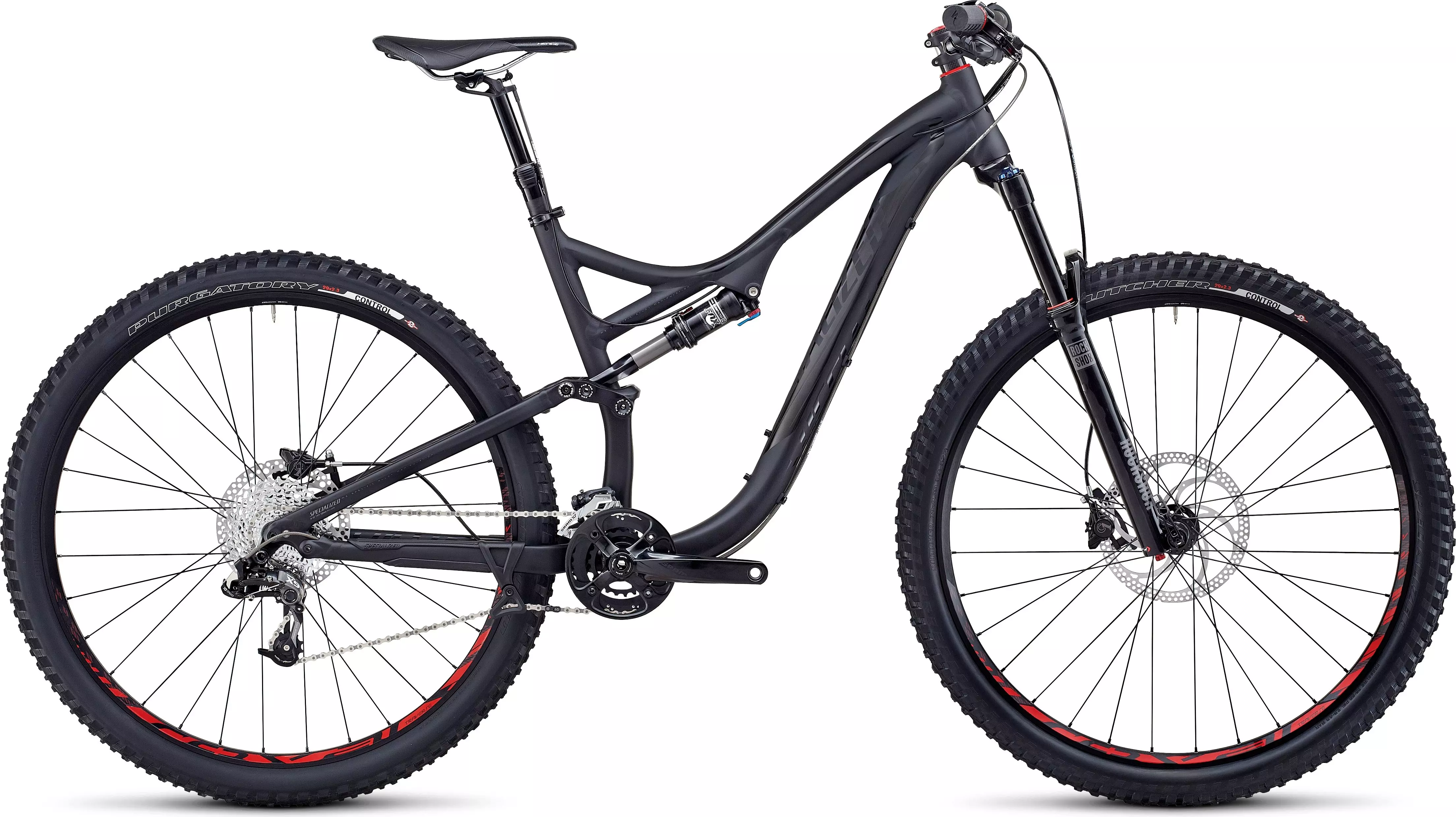 The M5 aluminium Stumpjumper FSR Comp EVO 29 is purpose-built for the aggressive trail rider. It separates itself from other carbon Stumpys with a slacker head angle and 150mm of front and rear travel. The Comp EVO features a custom Fox Float CTD Evolution shock with AUTOSAG, RockShox Revelation RC3 29 fork, custom Formula C1 hydraulic disc brakes, and 2Bliss Ready Specialized Butcher and Purgatory Control 2.3" tyres.
