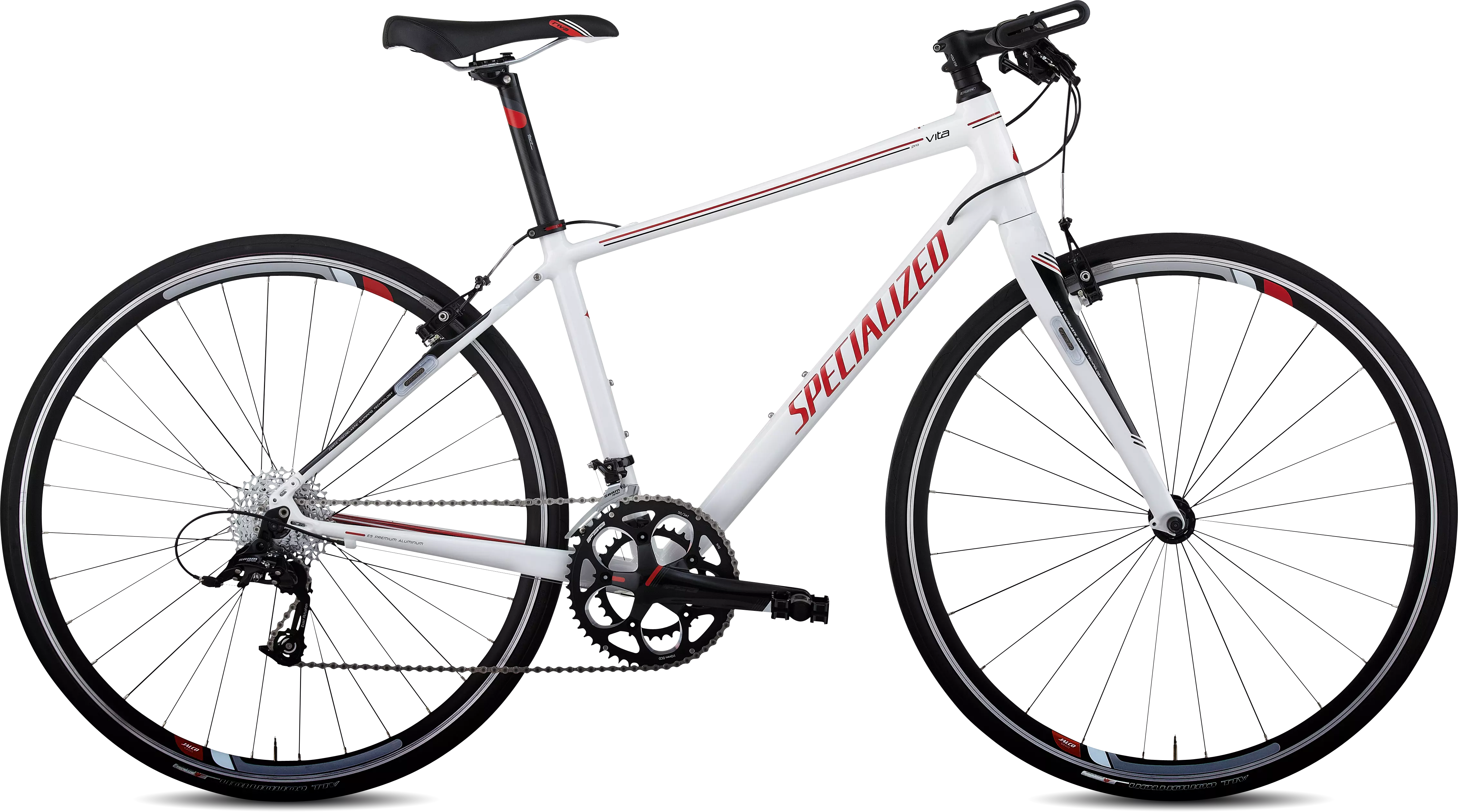 Specialized E5 aluminium, fully manipulated women's tubesets, women's fitness geometry, internal cable routing, carbon seatstays w/ Zertz, integrated headset, mudguard/rack eyelets