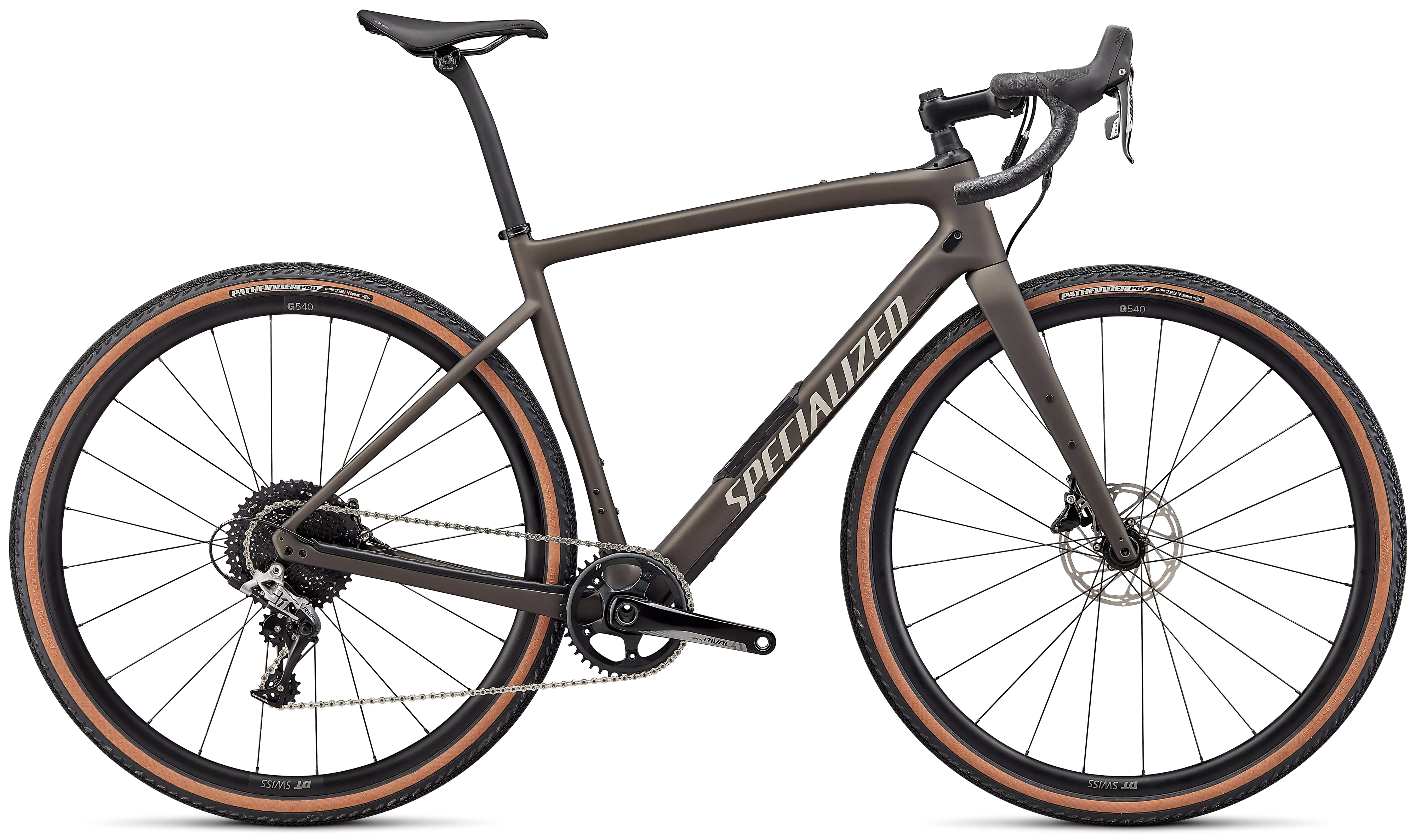 La Diverge Comp Carbon presenta el mismo cuadro de carbono FACT 9r y Future Shock 2.0 que la Pro, pero con el grupo de gravel SRAM Rival 1 1x11 de cambio mecánico. Las ruedas de aluminio DT Swiss G540 te mantienen rodando de manera eficiente, mientras que los neumáticos Pathfinder Pro de 42 mm, ganadores de Kanza, ofrecen rendimiento en asfalto liso, caminos de tierra y pistas de grava. Para darle a la Diverge Comp una conducción perfectamente equilibrada, montamos la tija de sillín Terra de Roval.