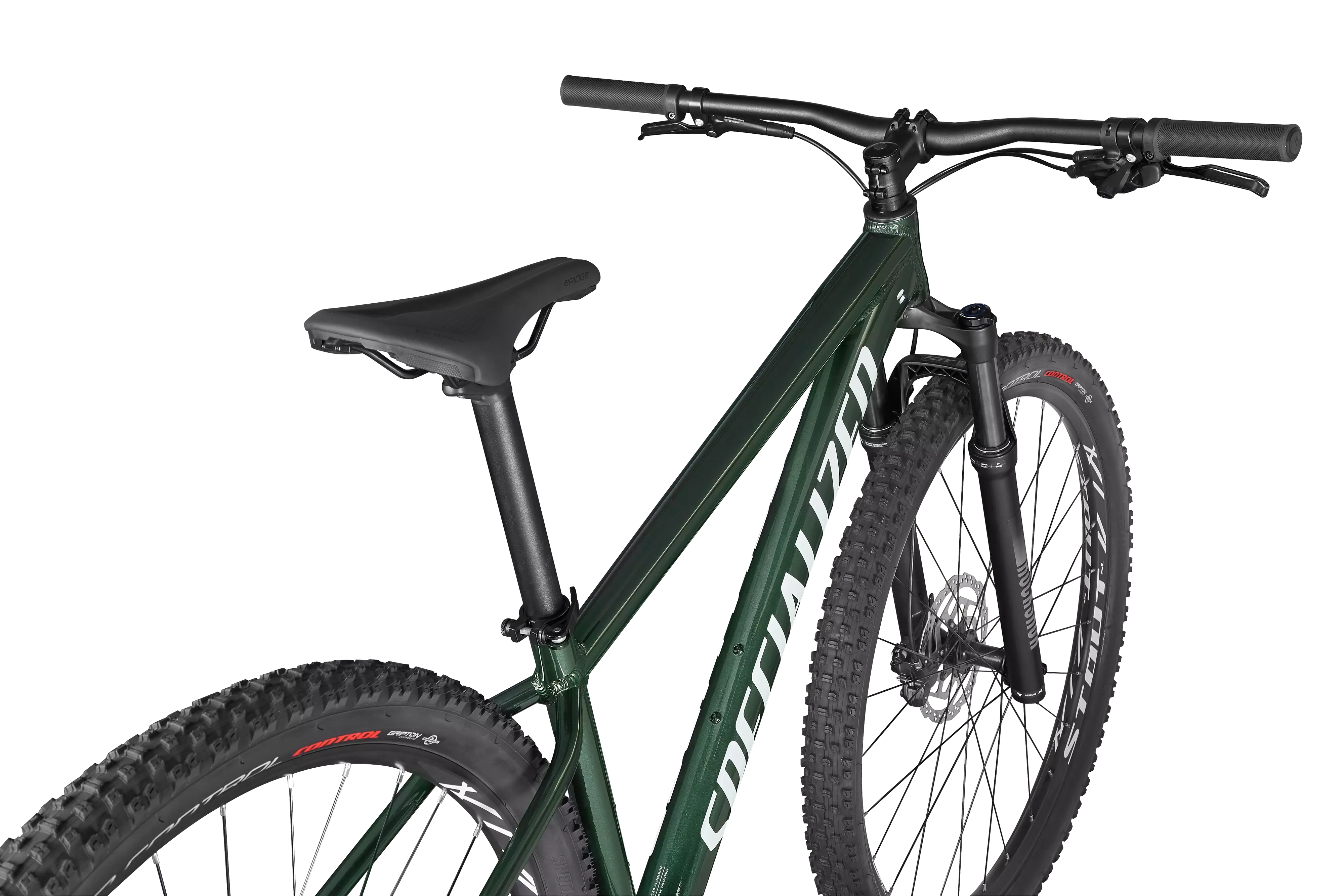 Apresentando um alumínio A1 Premium leve e durável, o quadro de alumínio cladeado da Rockhopper possui tubos superiores e inferiores hidroformados para manter o peso baixo e a resistência alta, ao mesmo tempo em que oferece um Standover mais baixo, roteamento interno de cabos e compatibilidade com canote retrátil.