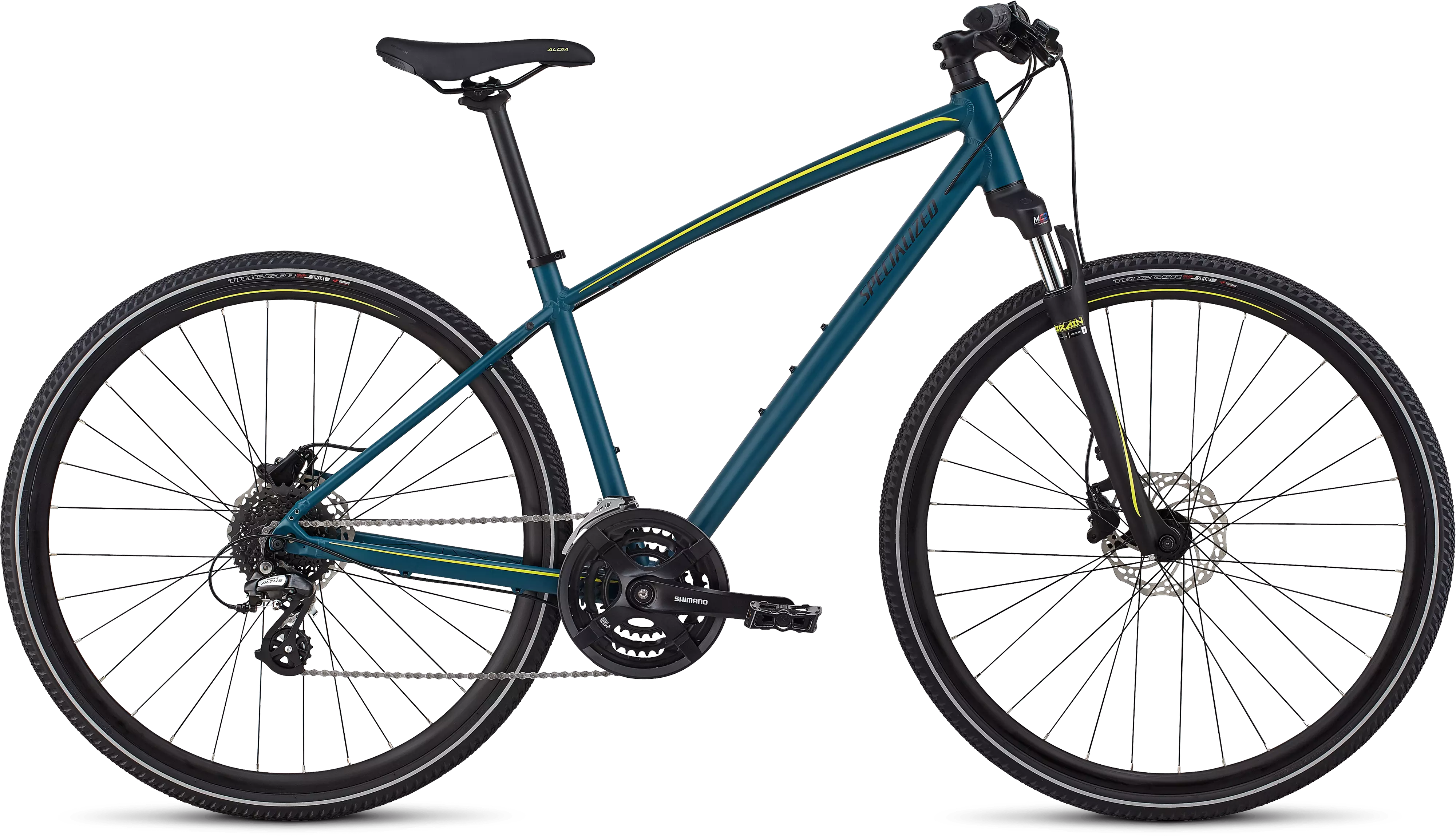 Specialized A1 premium aluminum, Fitness Geometry, fully-manipulated butted tubing, internal cable routing, flat mount disc, rack and Plug + Play fender mounts