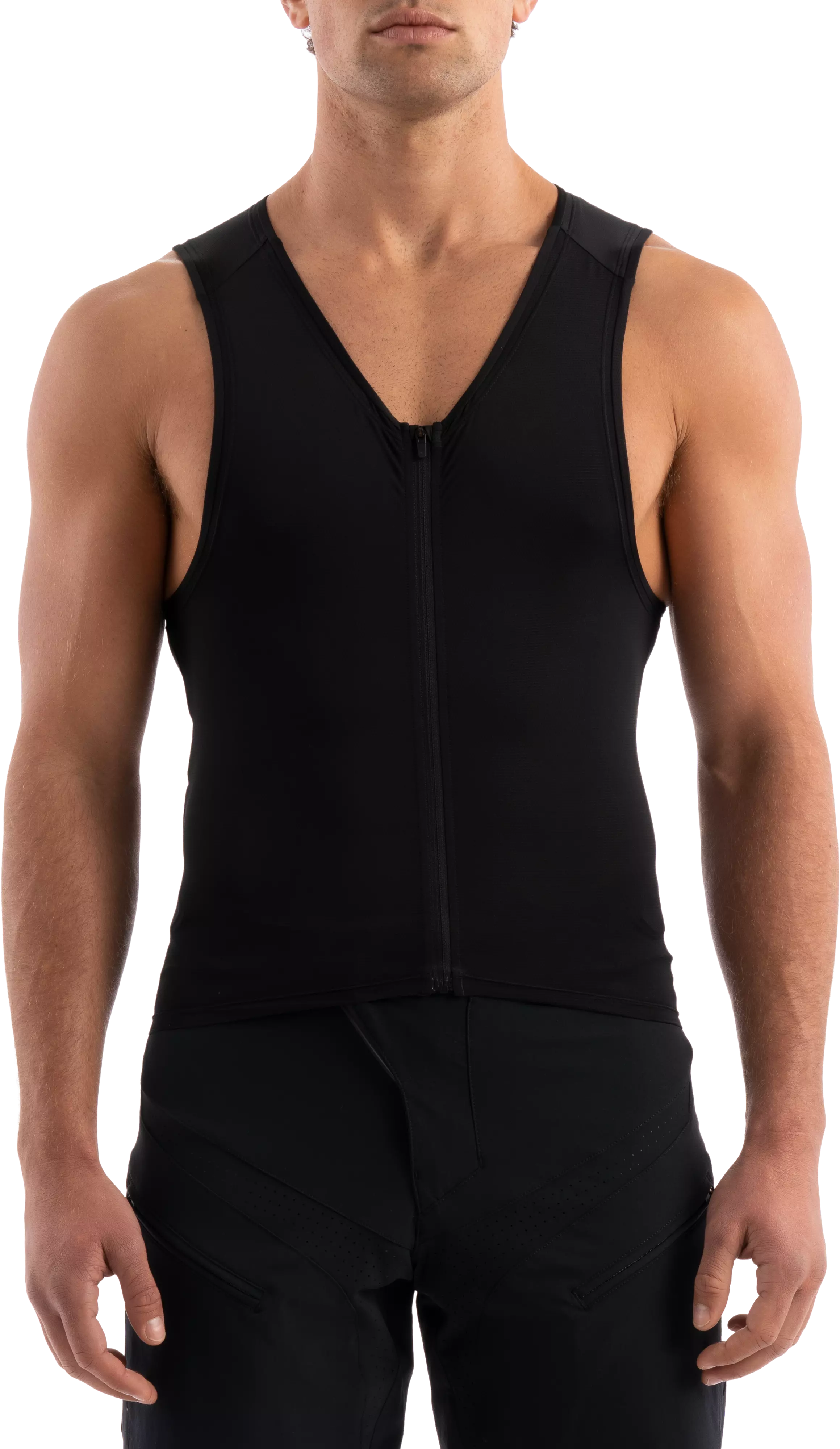Full-length front zipper allows you to control the fit and dump built-up heat on-the-fly.