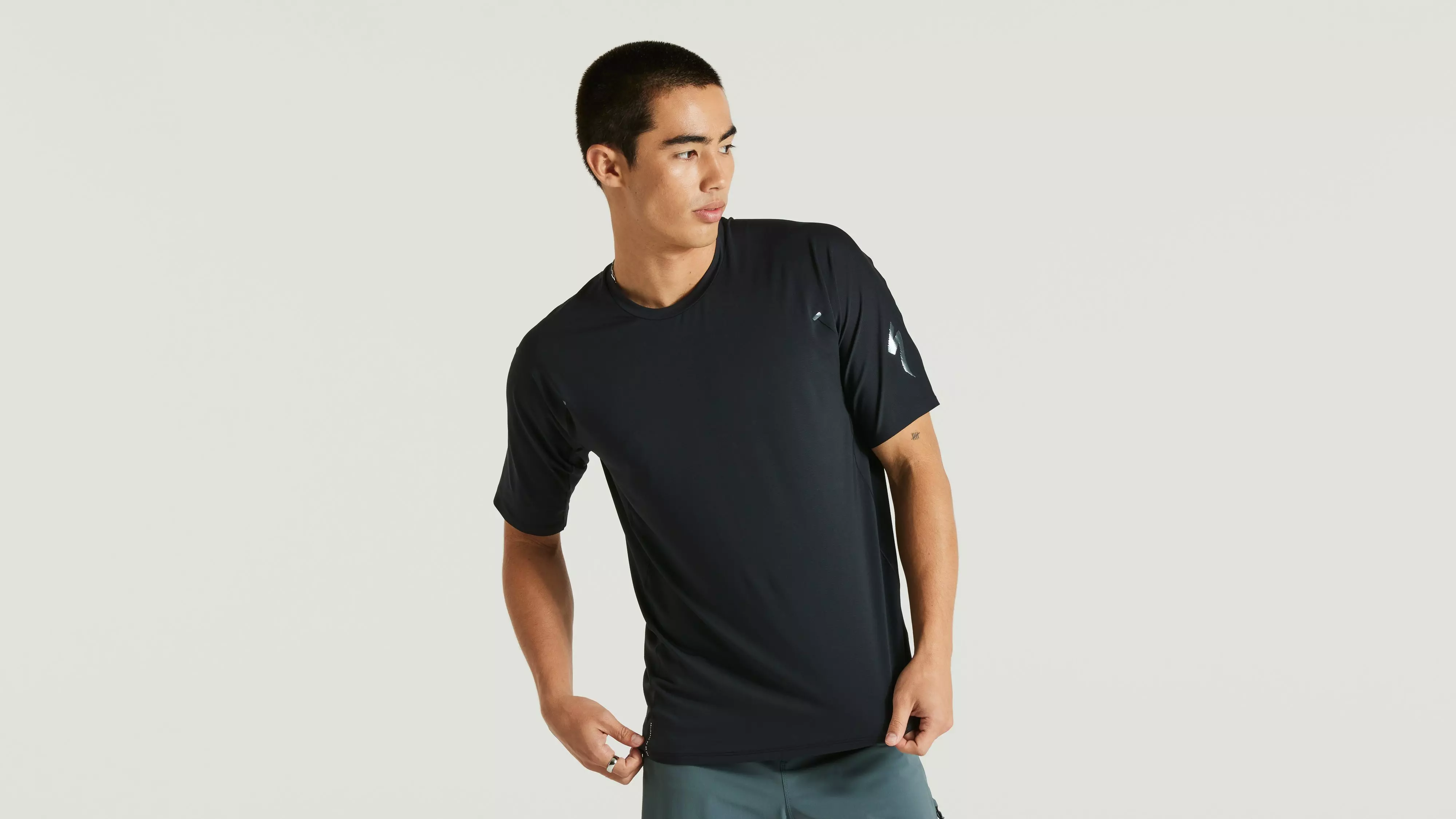 VapoRize™ é feito do nosso tecido mais respirável e leve, que usa uma mistura de Poliéster Reciclado para criar uma habilidade superior de secagem.