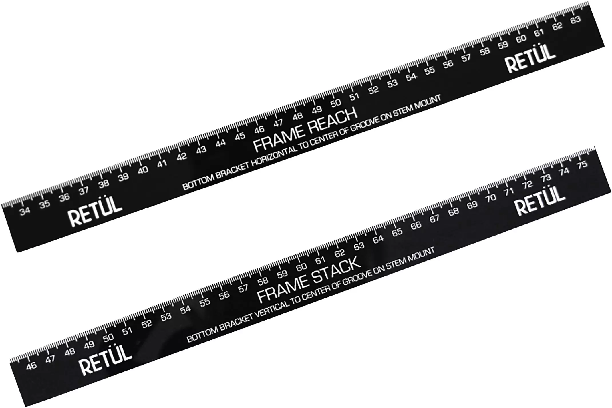 Réguas utilizadas para configurar posições universais de stack e reach na bike de fit Retül Müve ou Müve SL.