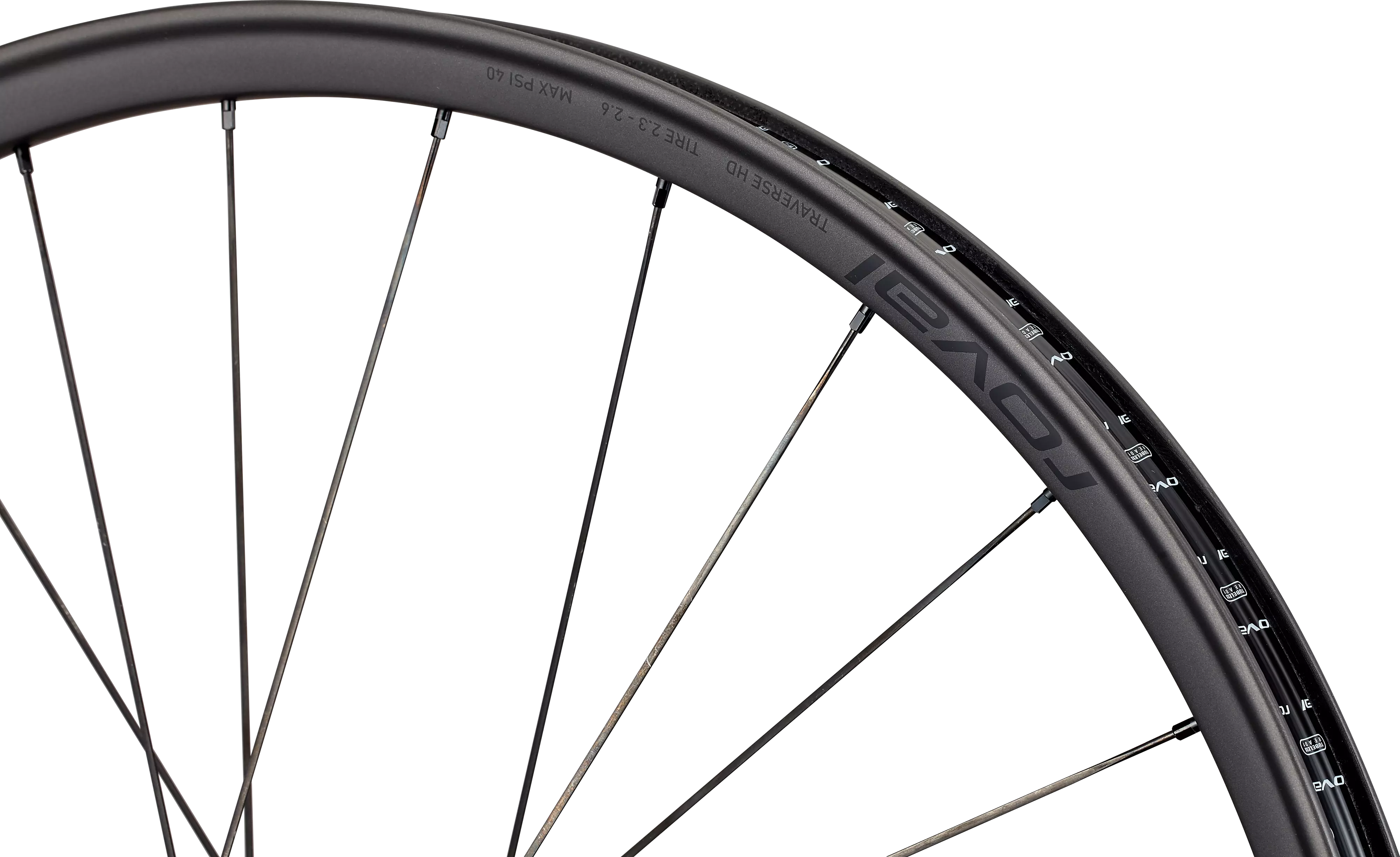 Aro: Traverse HD Assimétrico, Carbono, Dianteira: 29" - Traseira: 29'' e 27,5'', Freio a Disco, Design Zero Bead Hook, Compatível com Tubeless, Compatível com Insertos de Pneu, Compatível com Haste de Válvula Roscada Roval
