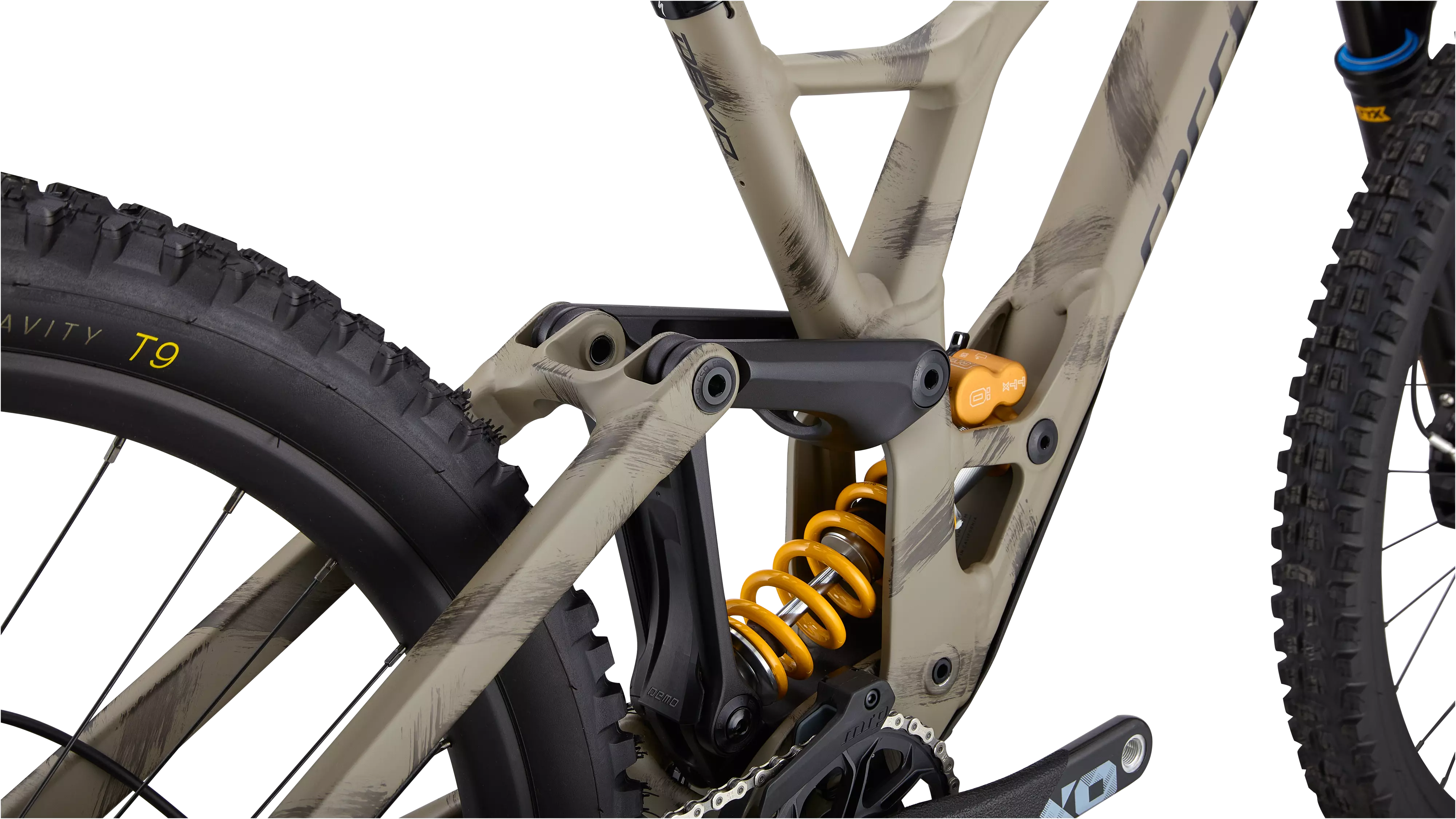 Blazing fast on tough tracks, the Demo Race suspension design has been developed around a more rearward axle path that reduces rear-wheel hang-up, increasing speed instead.