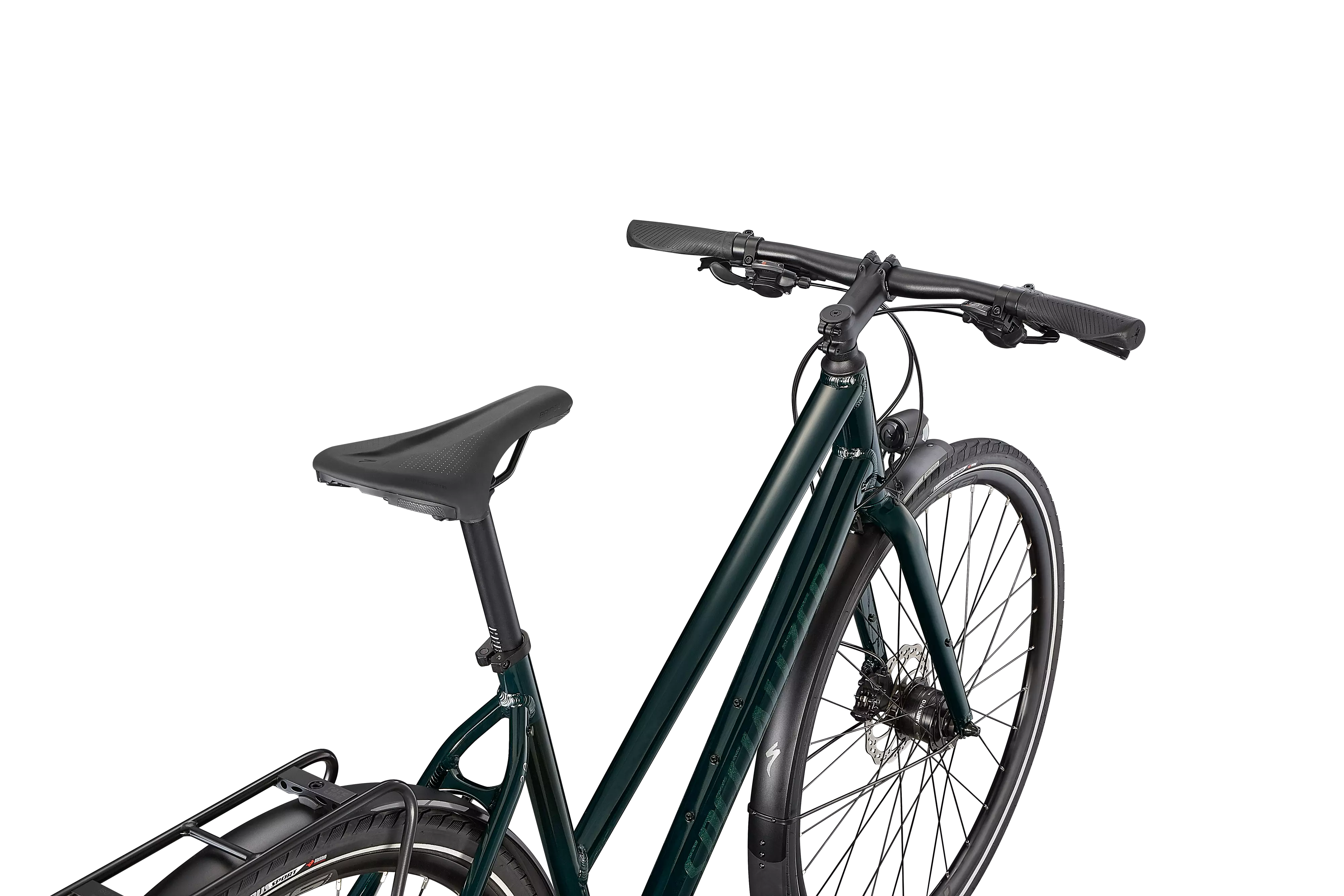 Specialized A1 Premium Aluminum, Fitness Geometry, butted tubing, internal cable routing, flat-mount disc, quick-release, Plug + Play rack/fender mounts