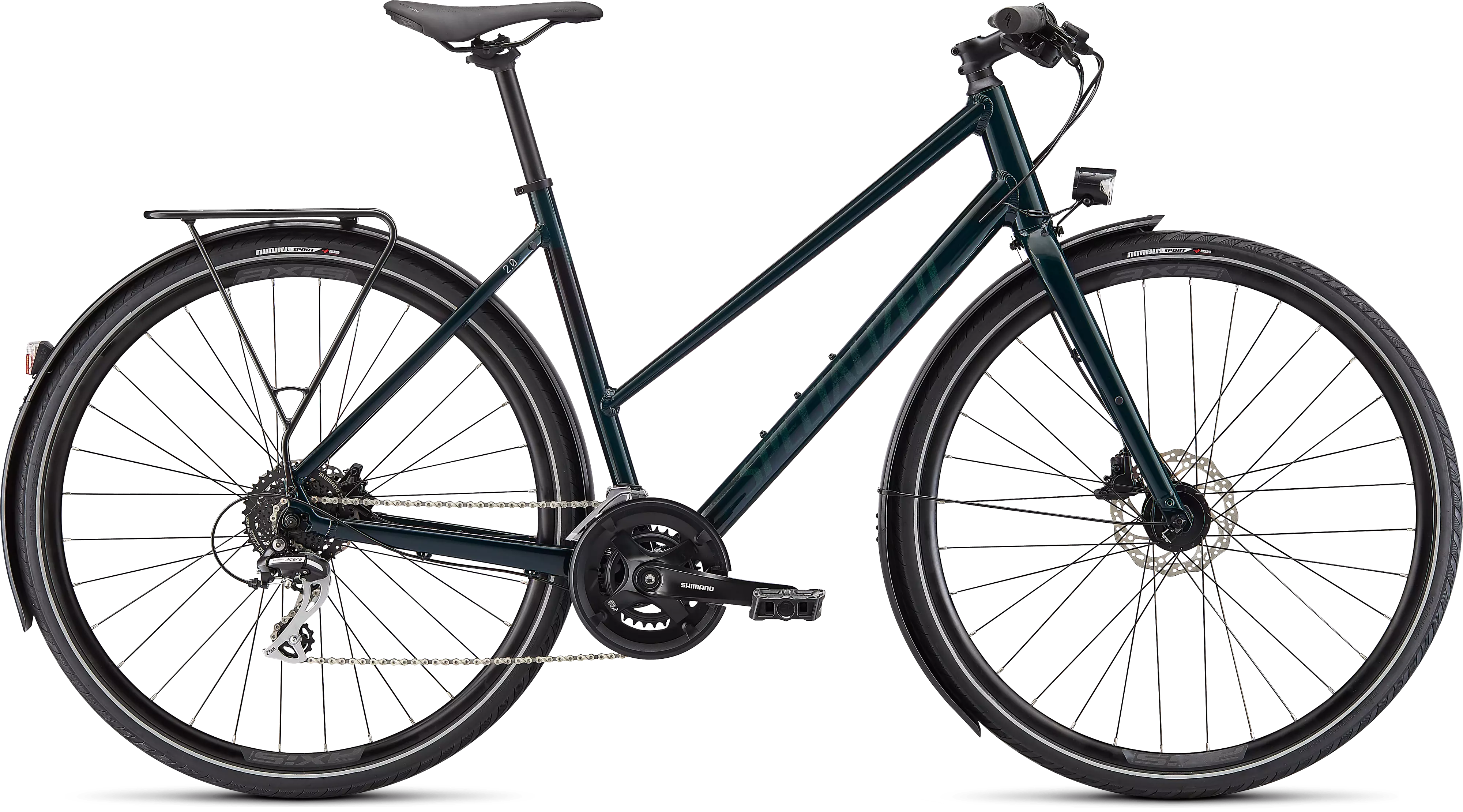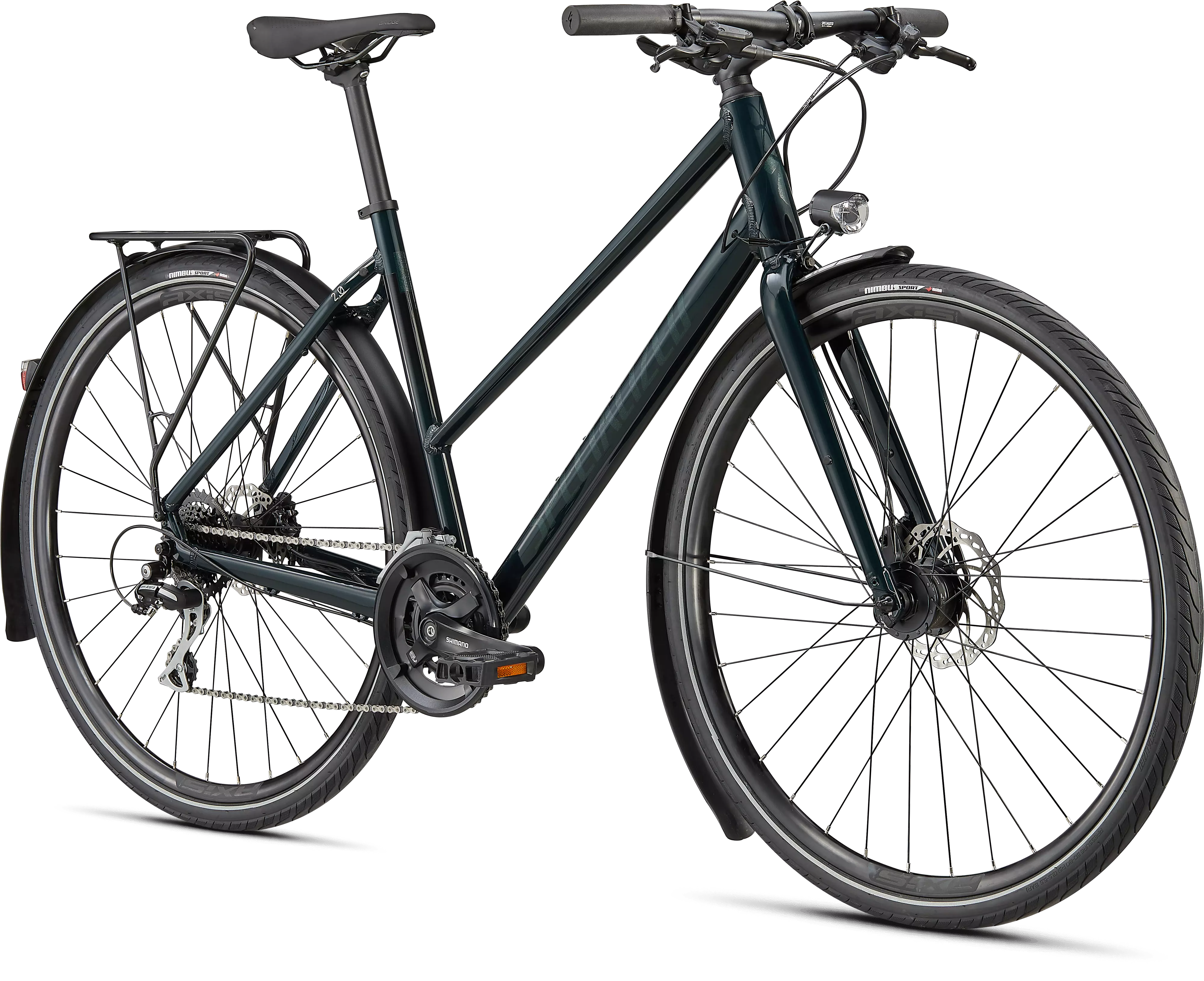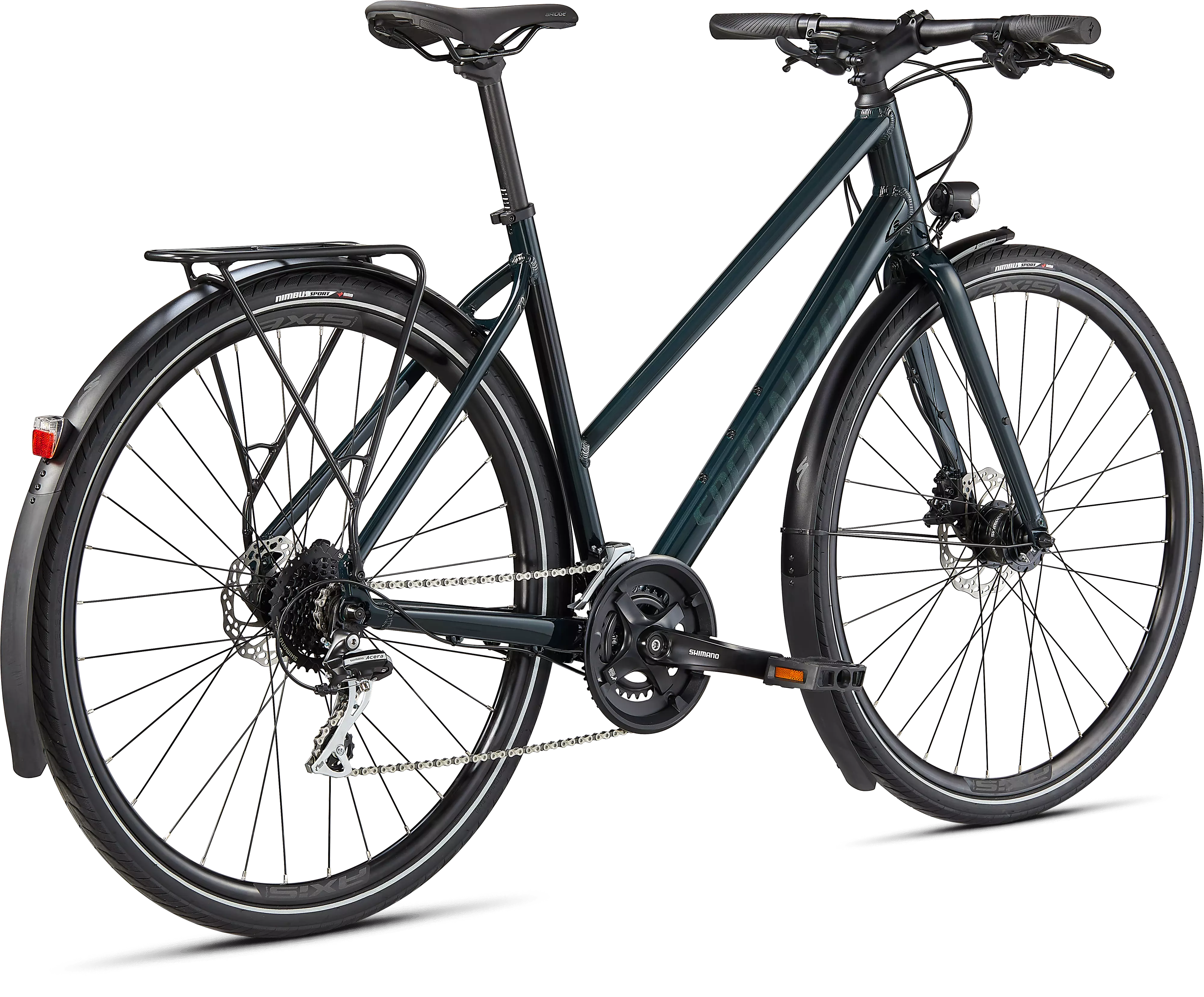 • Extra-bright front and rear lighting powered by a Shimano Dynamo hub to see and be seen.