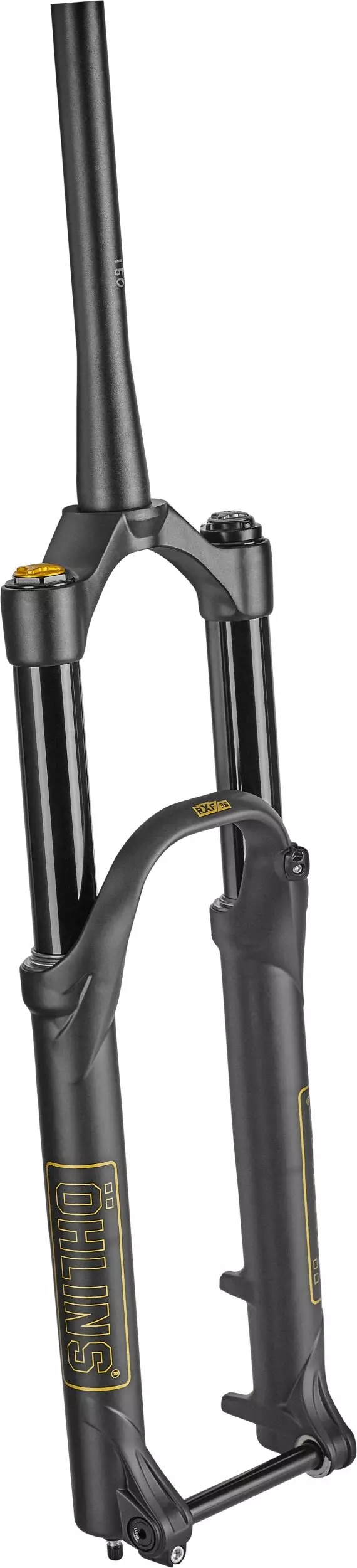 The shape of the spring force is also capable of being adjusted, which allows riders more fine-tuning options for preferences like increased sensitivity without the threat of bottoming out. Öhlins has increased the stanchions to 36mm and upped the spacing to 110mm with an ultra-stiff two piece alloy crown design. This means that it'll experience less flex for more tire control, while also trimming down on some weight.