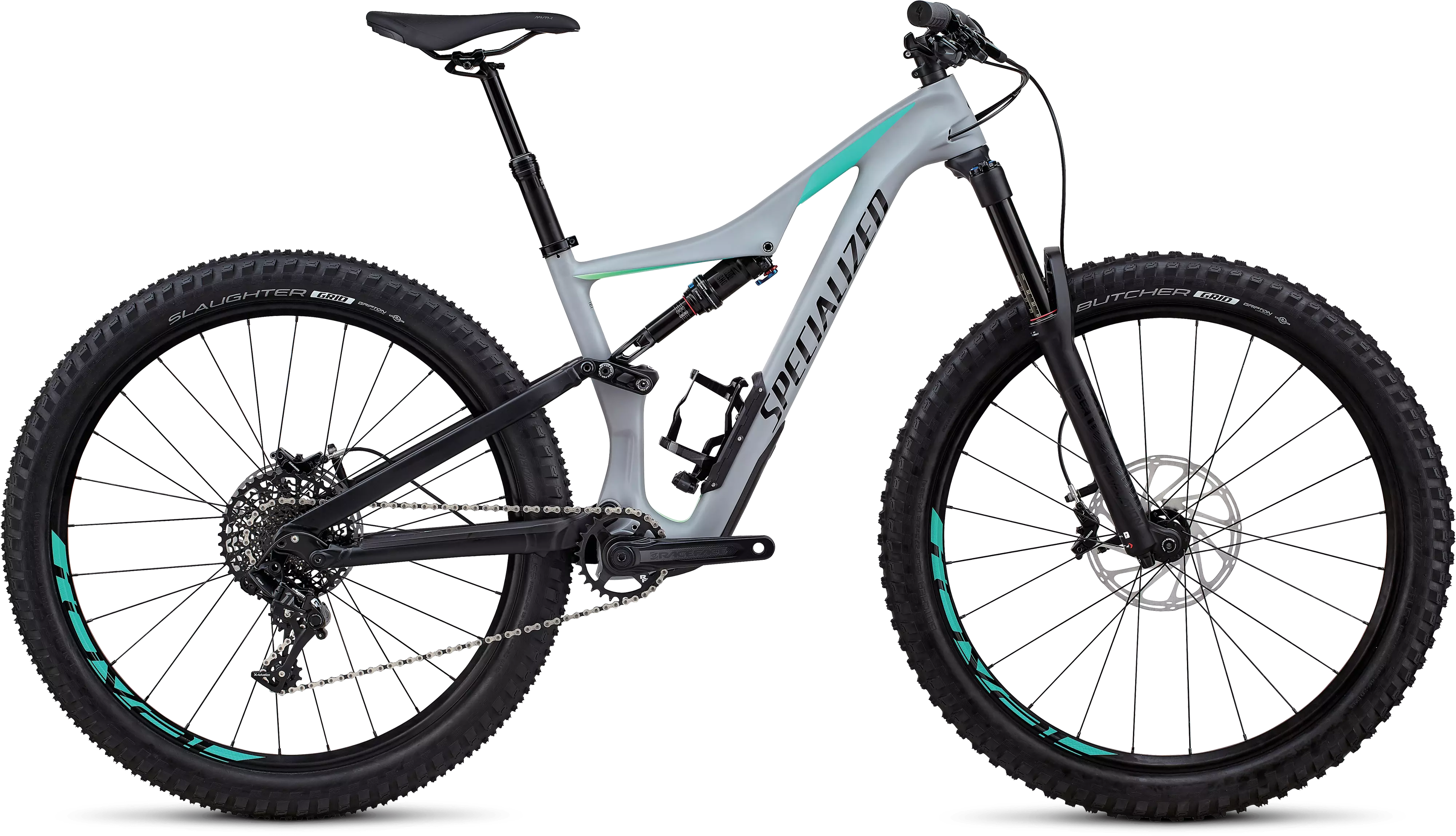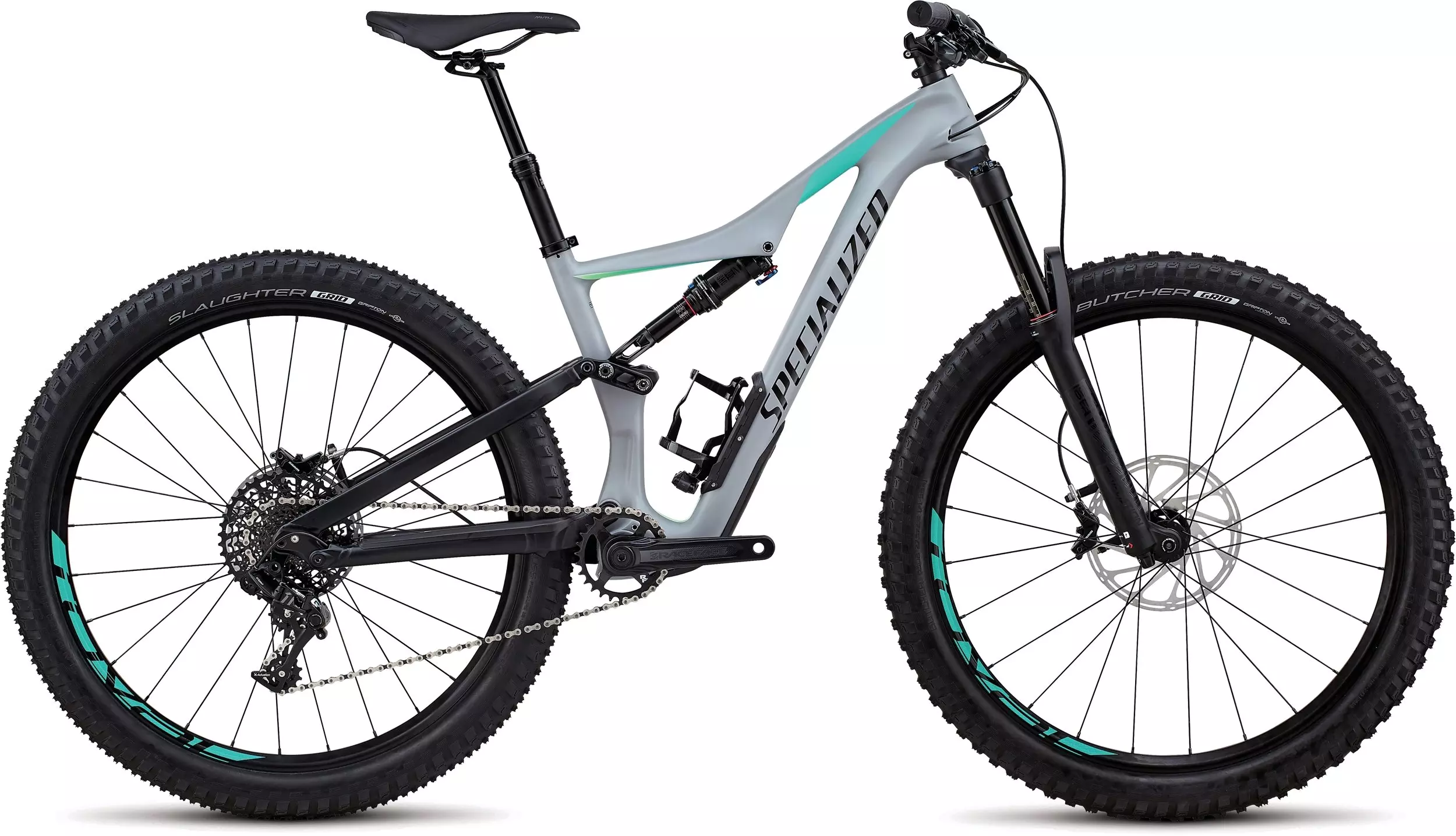 FACT 9m carbon front chassis w/ Specialized M5 Aluminum rear end, 27.5 Trail Geometry, SWAT™ Door integration, PF30 BB, fully enclosed internal cable routing, 12x148mm dropouts, sealed cartridge bearing pivots, replaceable derailleur hanger, 150mm of travel