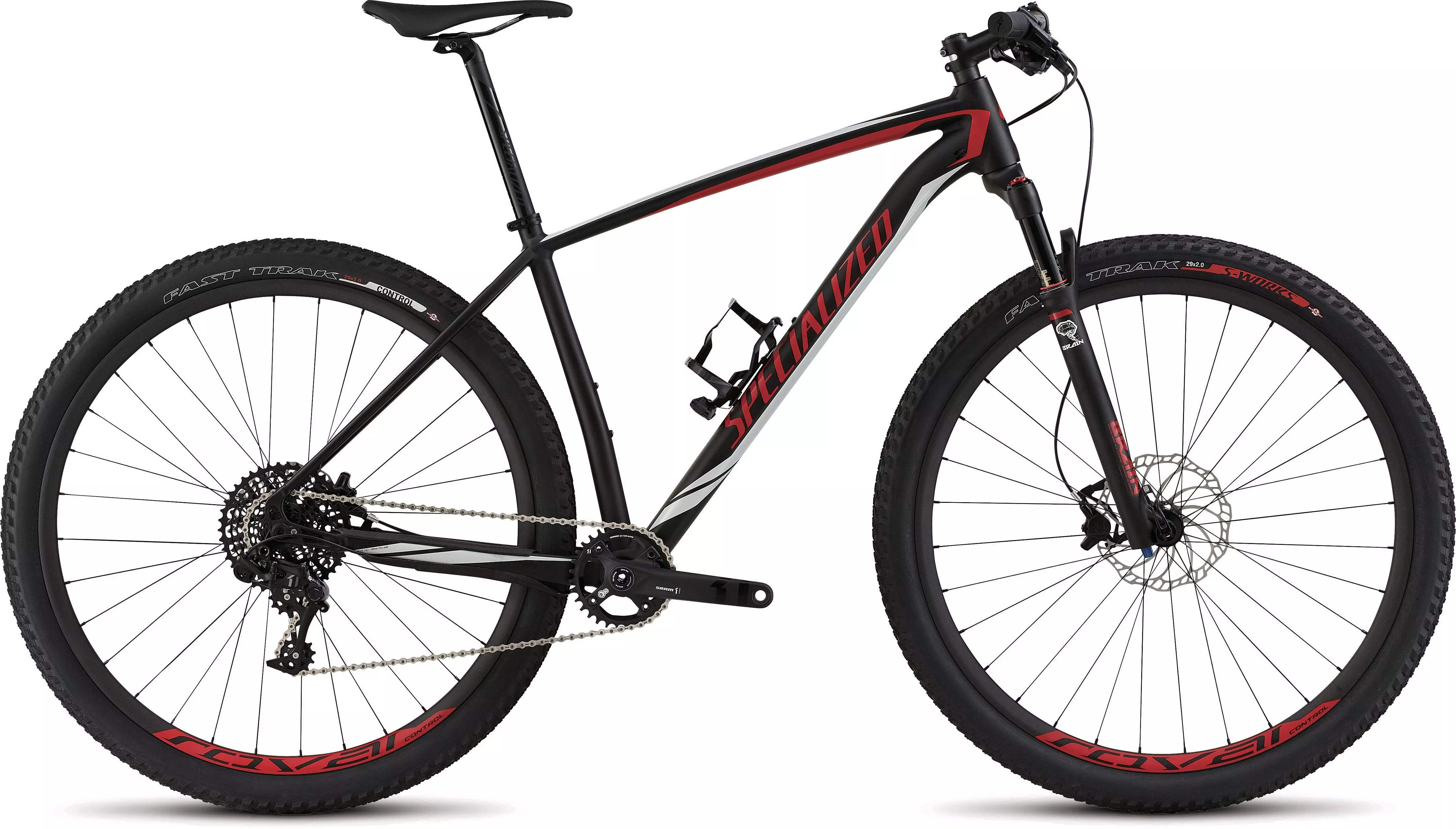 The M5 Stumpjumper Elite World Cup features an 90mm-travel RockShox SID Brain fork with rebound and lockout adjustment, and custom SRAM 2X10 crankset.