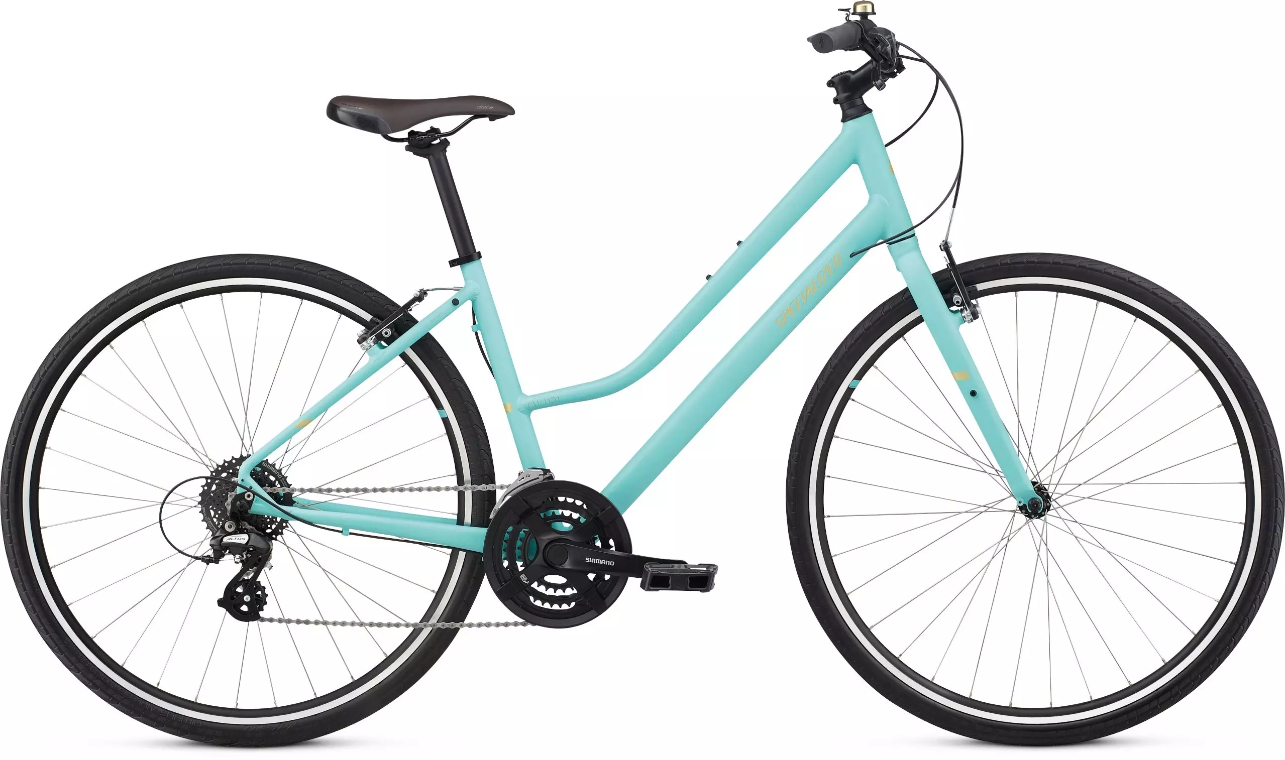 When it comes time to ride, the last thing you want to do is fix this or pump that, right? We hear you loud and clear, which is why we made the Alibi Sport Step-Through to be ready to roll whenever you are. It has a step through frame design that makes getting on and off the bike as easy as can be, an anti-rust chain that removes the need for dirty, grimy maintenance, and puncture-proof, airless tires. That's right, these tires don't need any pumping and they'll never go flat. As for the ride, the Alibi has a wide range of gears, courtesy of Shimano, that'll get you over any hill that stands in your path, plus supportive Body Geometry grips and saddle that are designed specifically for women. You'll never need an "excuse" to ride the Alibi.