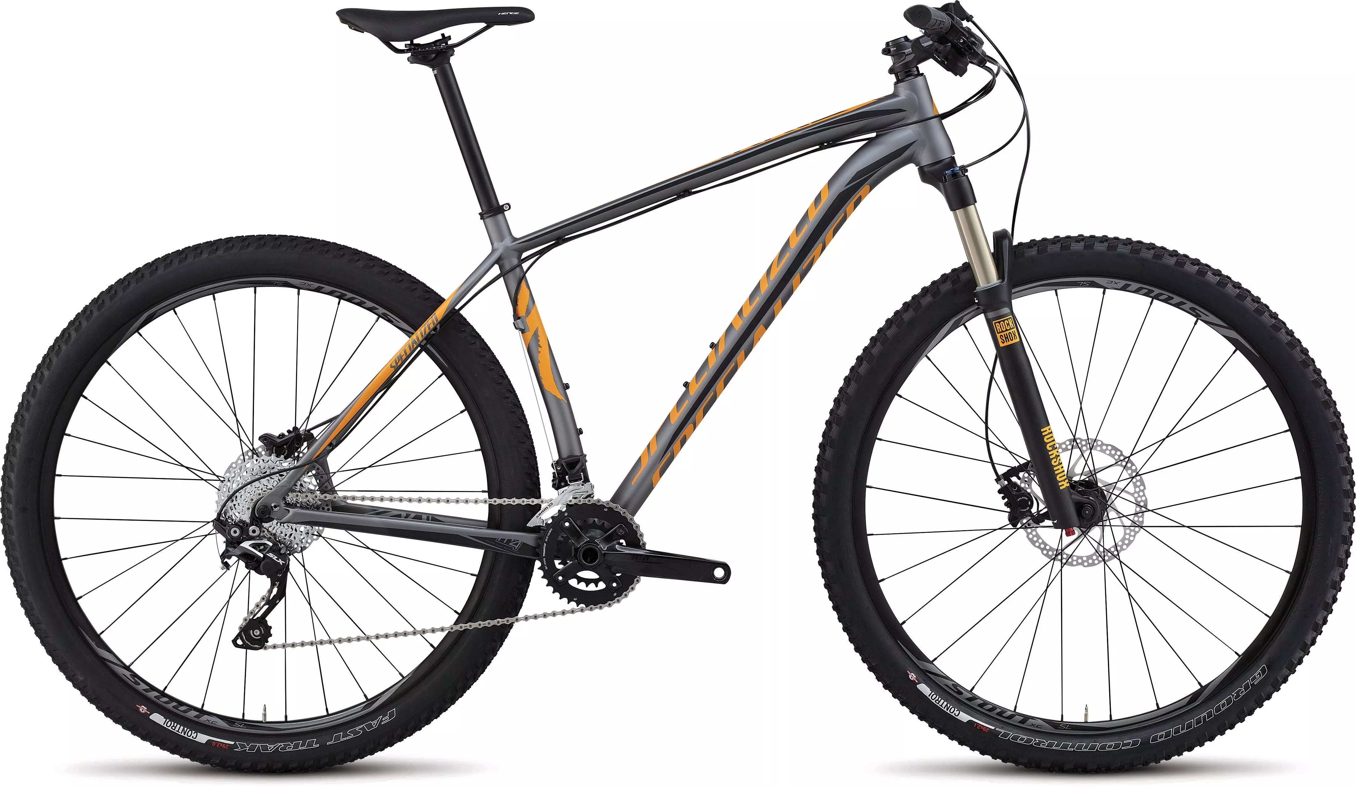 Specialized M4 Premium Aluminum, XC 29er Geometry, fully butted w/ smooth welds, tapered headtube and seat tube, forged post-mount 160mm disc dropouts, replaceable alloy derailleur hanger