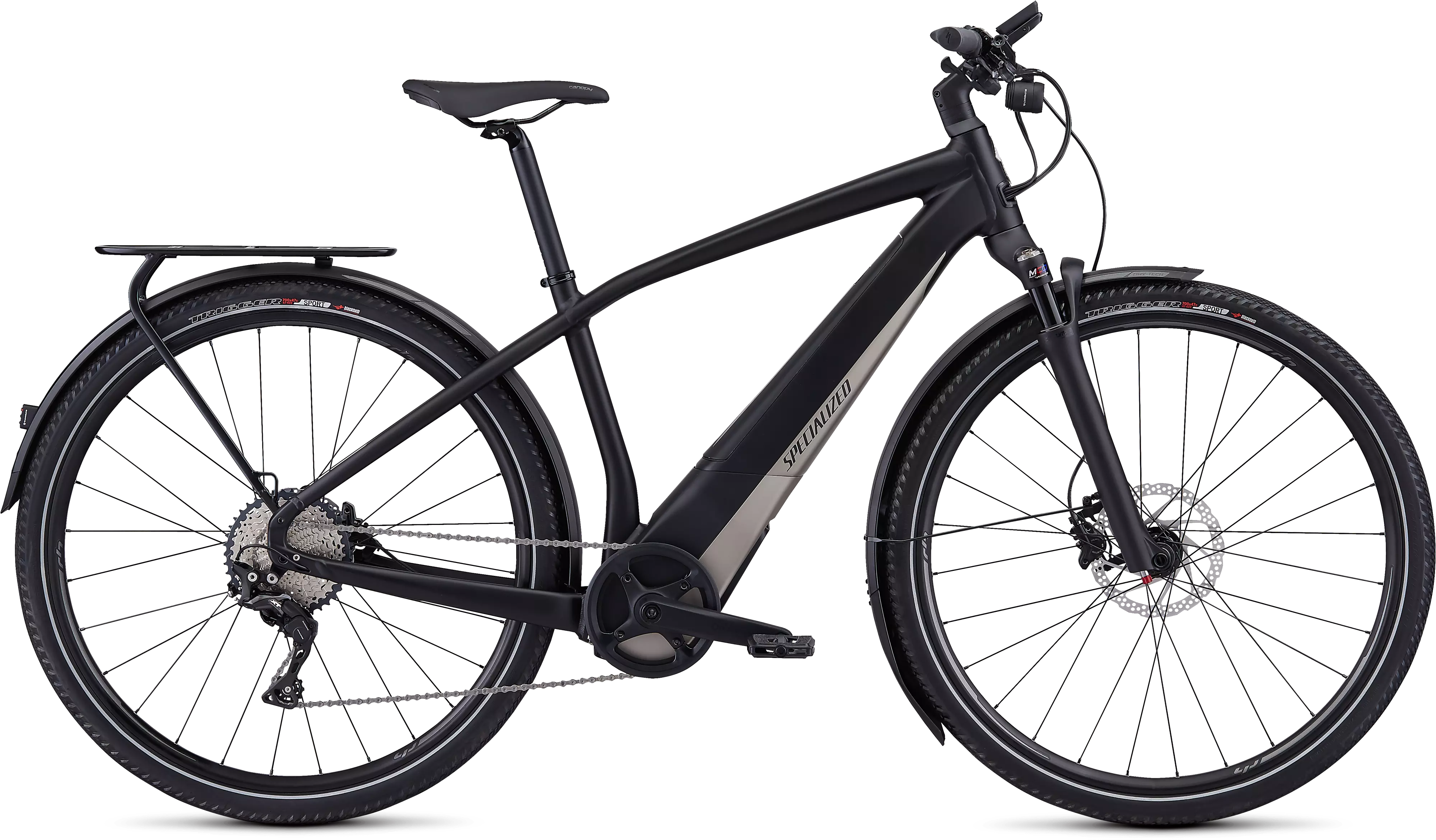 To top off all of the innovative features, we chose a worry-free spec on the Turbo Vado 4.0, so it features Shimano 11-speed components, hydraulic disc brakes, racks, and fenders.