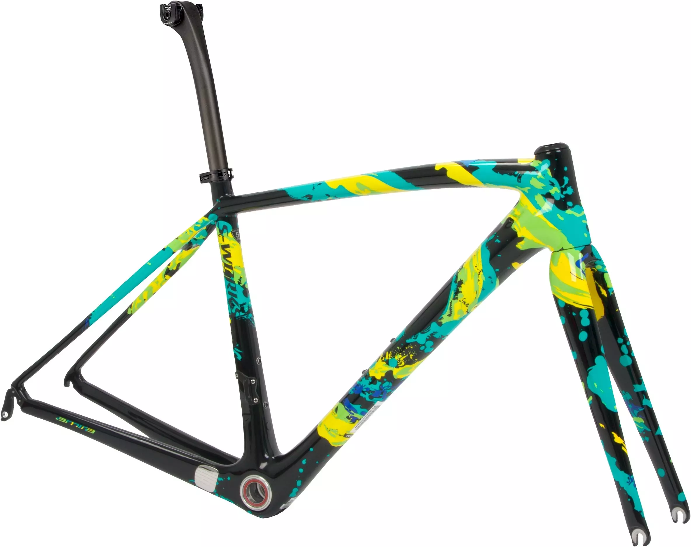 It's simple: when someone attacks on a climb, you want to respond quickly and with confident assurance, and when it's you who's breaking away, you'll want to accelerate with snappy intensity and leave everyone in your wake. The S-Works Amira LTD frameset is a limited edition continuation of the Vogue Amira—a fan favorite, which sold out in the USA within weeks of its release. This year, the design is based on an original, six-foot piece of art that was created by one of our talented, in-house female designers. The colors, style, and design of this vibrant watercolor painting translate to a bold, modern art piece that rides like a dream.