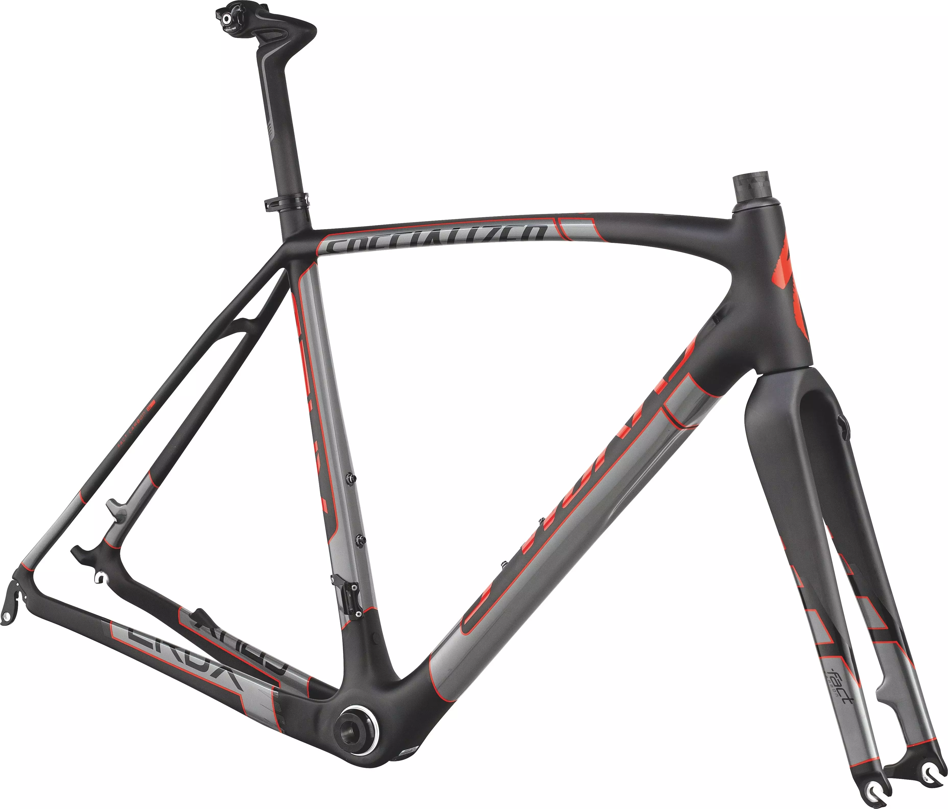 Cadre Specialized en carbone FACT 11r spécifique freins à disque avec boîtier de pédalier OSBB pour la rigidité et la légèreté.