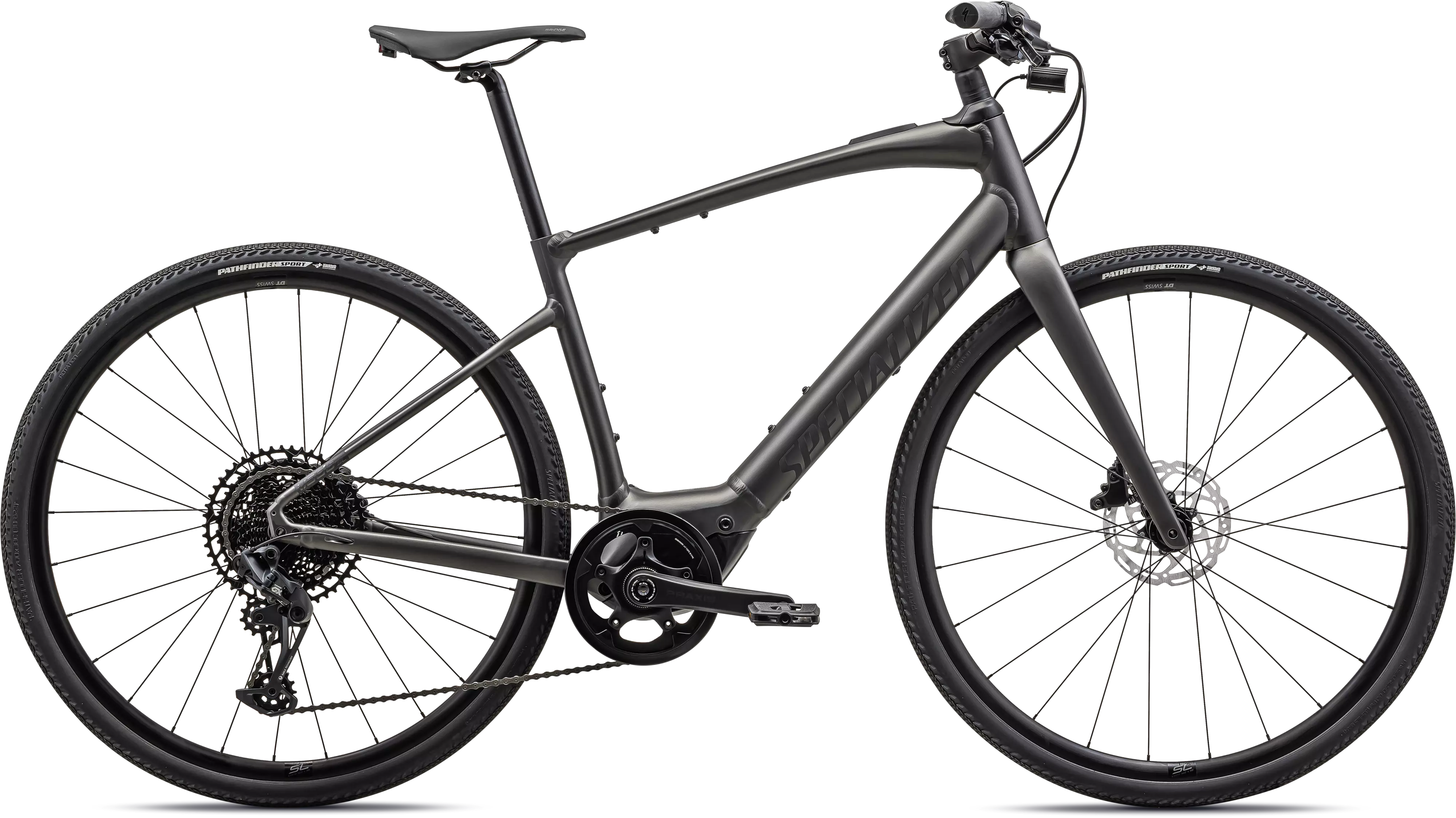 Float over the rough stuff with DT Swiss R500 disc wheels paired with fast-rolling, high-grip, Specialized Pathfinder 38c tires, featuring proprietary GRIPTON® rubber compound.