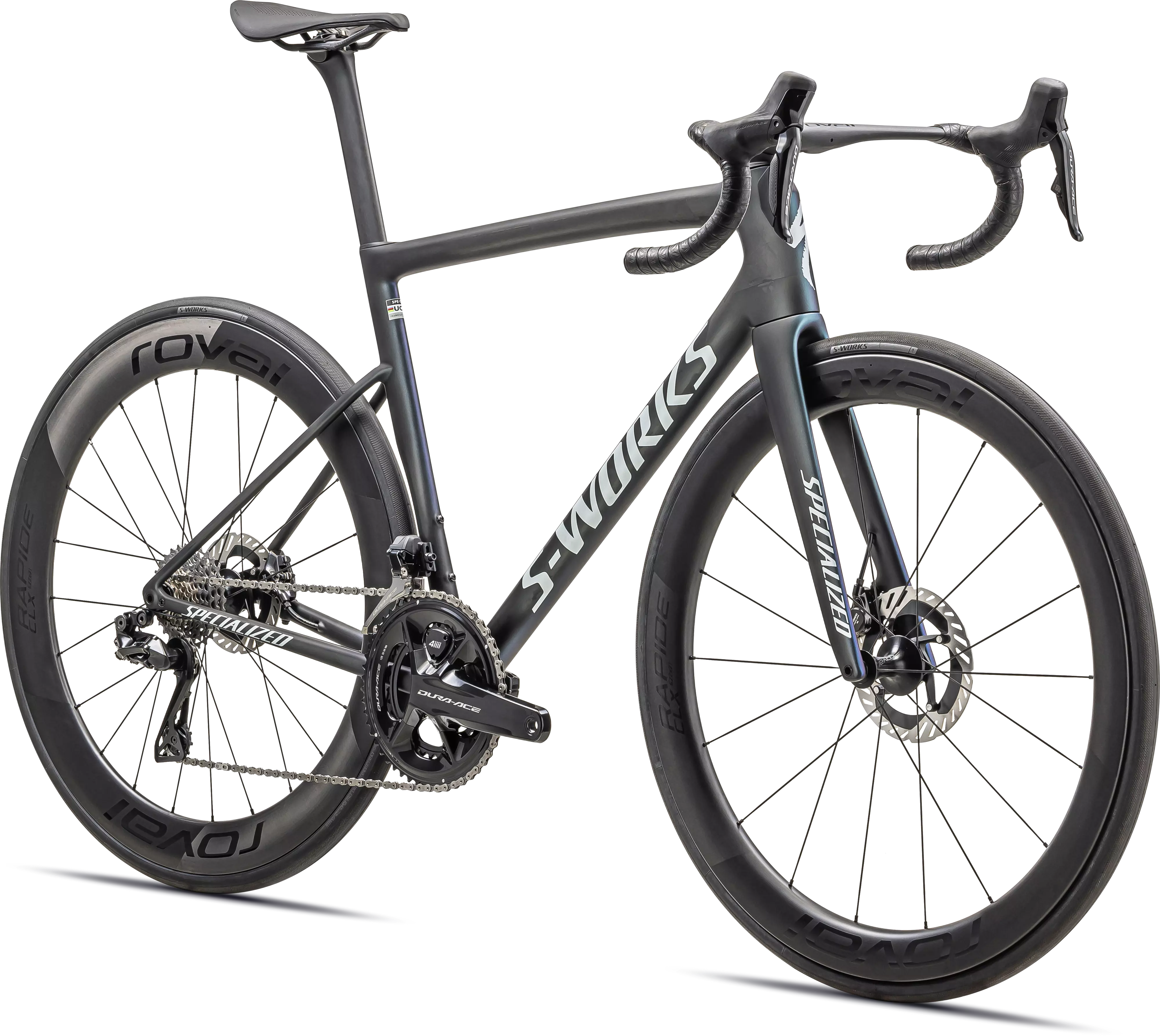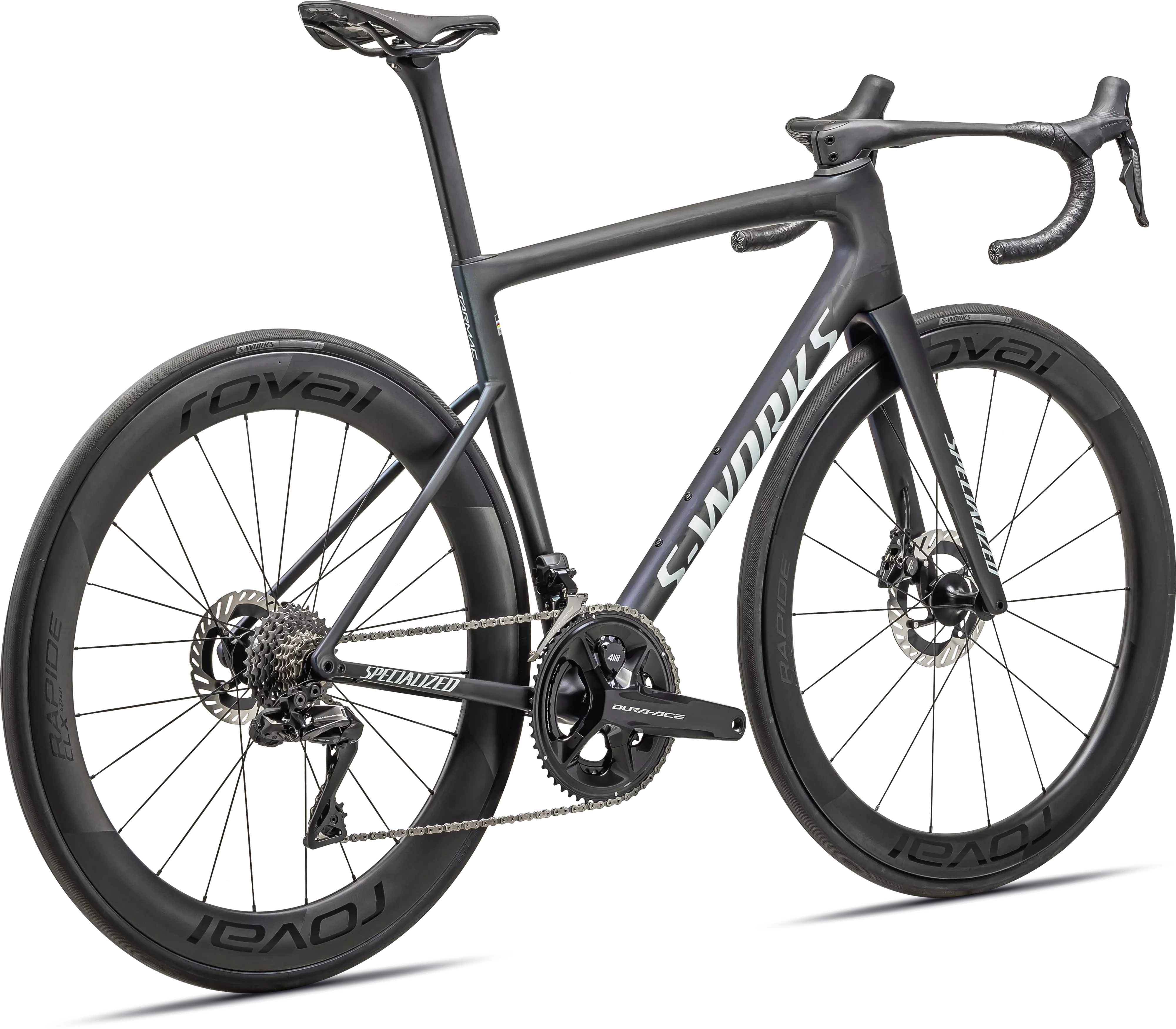 Le S-Works Tarmac SL8 est équipé uniquement des meilleurs composants. Un groupe complet Shimano Dura-Ace série 9200 Di2 avec double capteur de puissance et une paire de roues Roval Rapide CLX II compatibles Tubeless complètent parfaitement le cadre le plus rapide au monde. Tous les modèles S-Works Tarmac SL8 sont livrés avec un cockpit Roval Rapide pour gagner du poids et offrir la surface d'attaque la plus rapide possible.