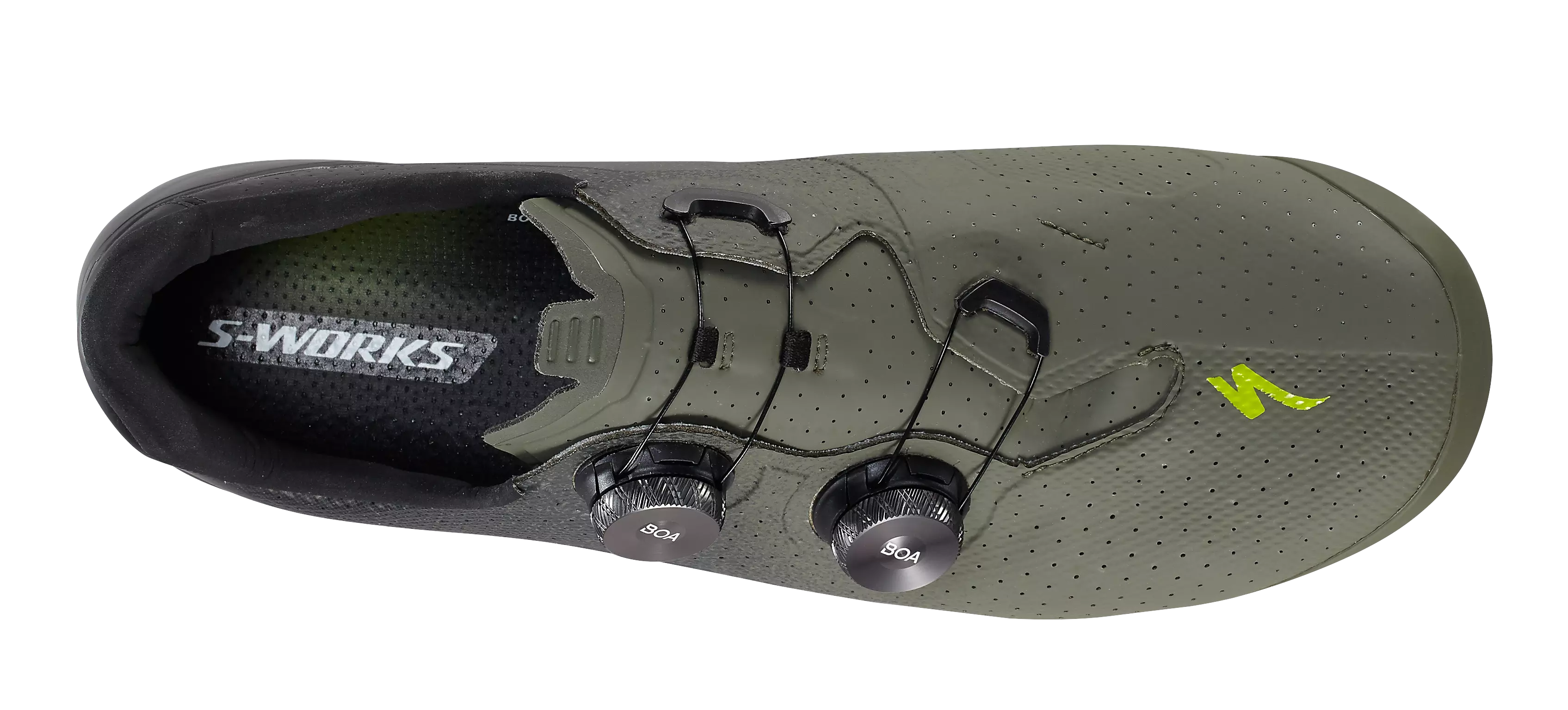 Guidés par plus de 100 000 scans de pieds issus de nos données de positionnement RETÜL, nous avons affiné chaque détail de la tige de notre S-Works Torch afin d’obtenir un ajustement et des performances améliorés. Par exemple, le câble BOA® a été décalé vers le bas et incliné pour empêcher le soulèvement de la voûte plantaire dans la chaussure. Cette évolution a permis de supprimer la bande autoagrippante de la version précédente tout en offrant une structure améliorant la puissance et éliminant les pressions ou les pincements indésirables.
