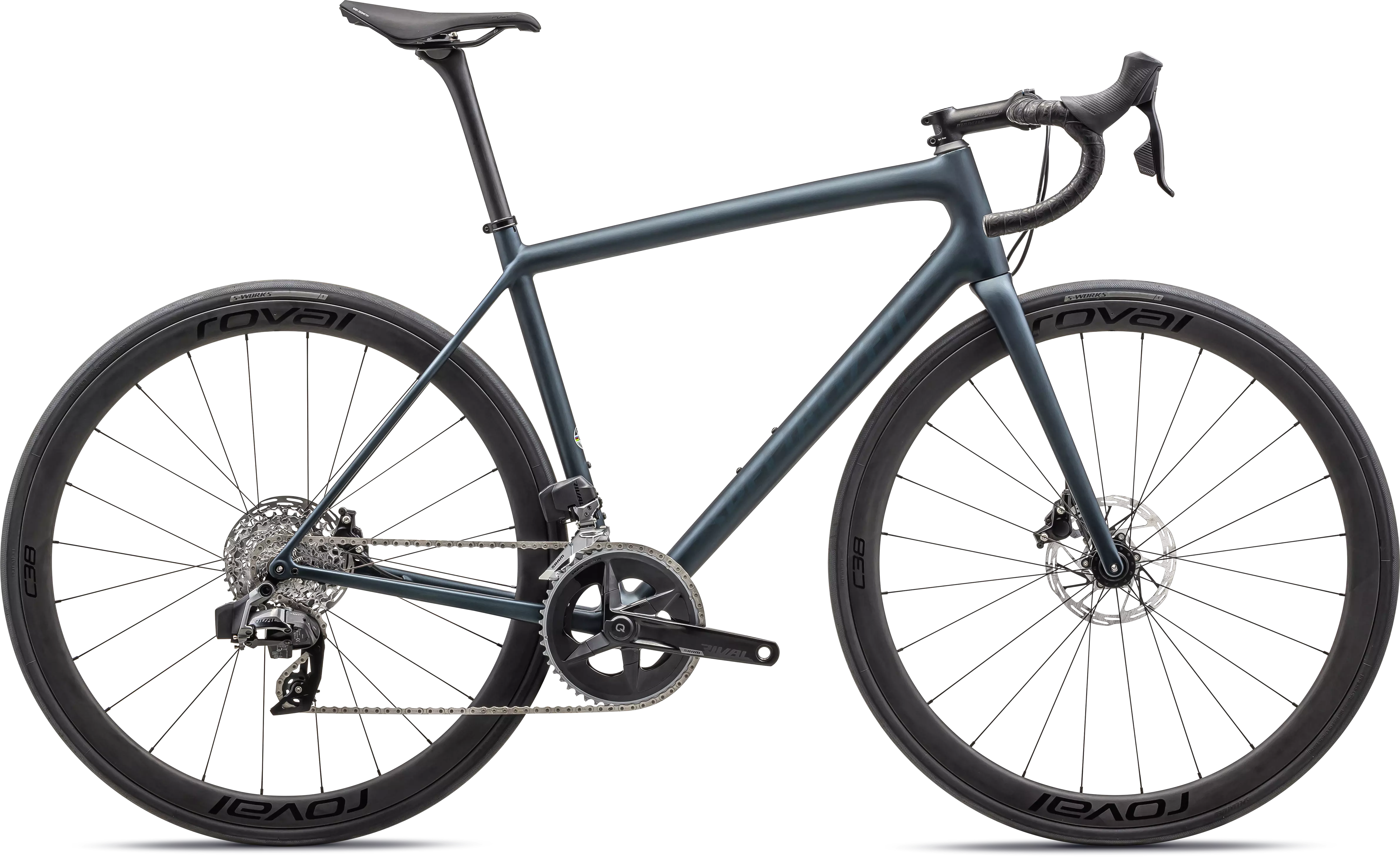 Con el grupo electrónico inalámbrico SRAM Rival eTap AXS y frenos de disco idráulicos, combinados con las ruedas de carbono Roval C38 Disc muy resistentes, tienes la bicicleta perfecto para salir a la carretera.