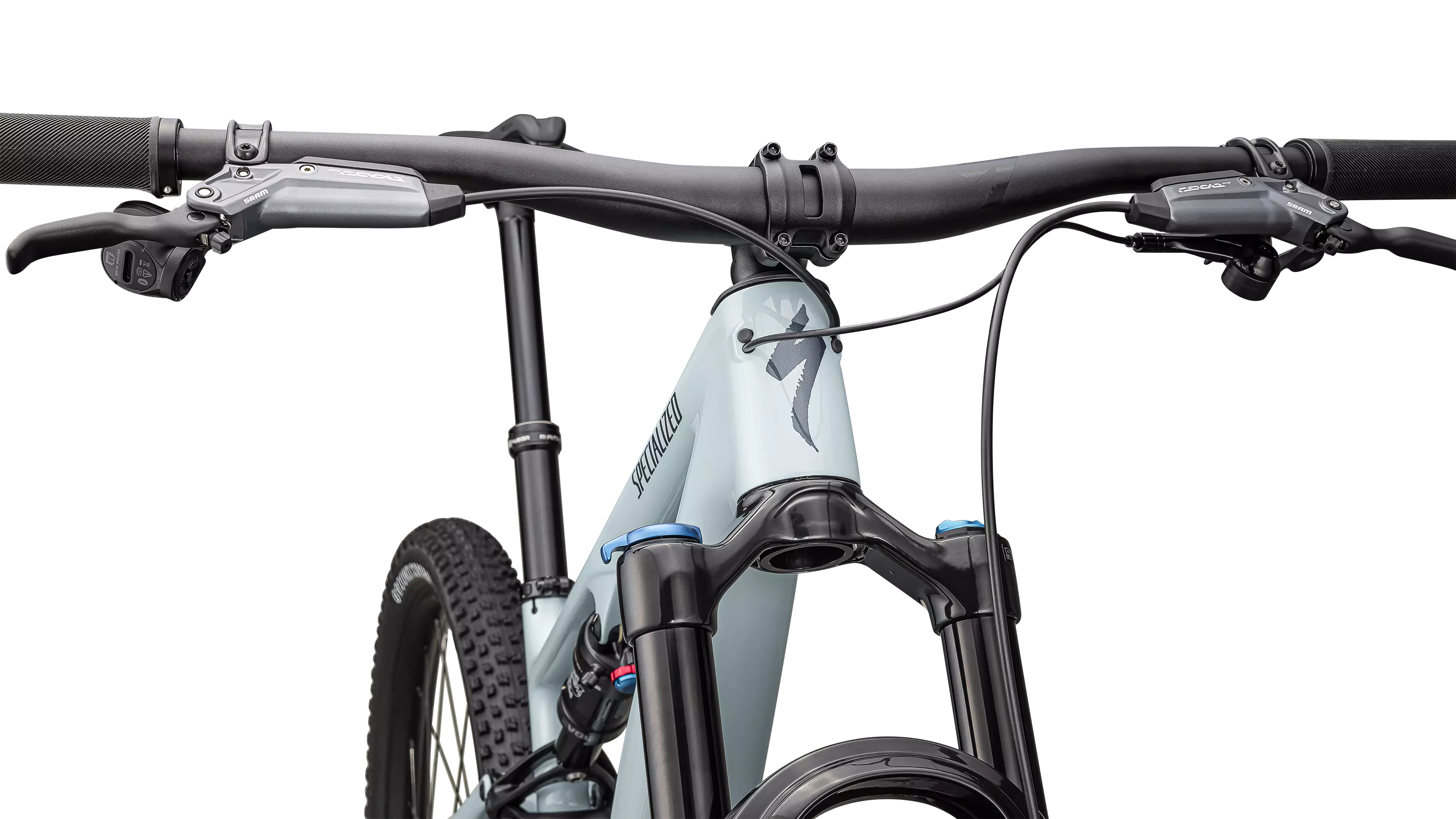 Los legendarios frenos Code Bronze Stealth de máxima potencia de SRAM crean una cabina elegante y ajustes fáciles
