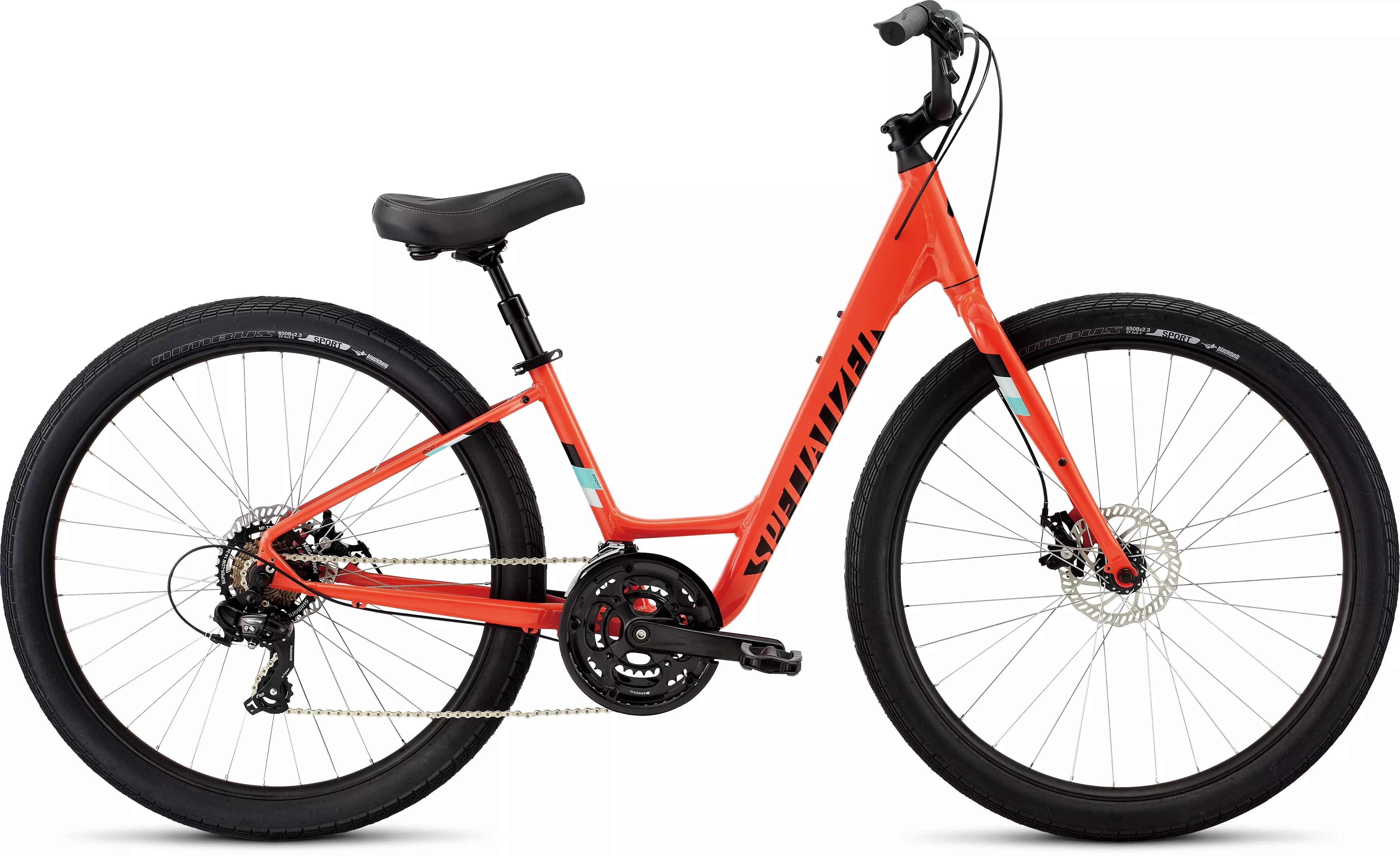 Diámetro ancho, 650bx2.3" los neumáticos Nimbus Sport proporcionan una tracción excelente, estabilidad y amortiguación, lo cual crea un desplazamiento más seguro y fiable, y una rodada más cómoda ya sea en carreteras pavimentadas o de barro.
