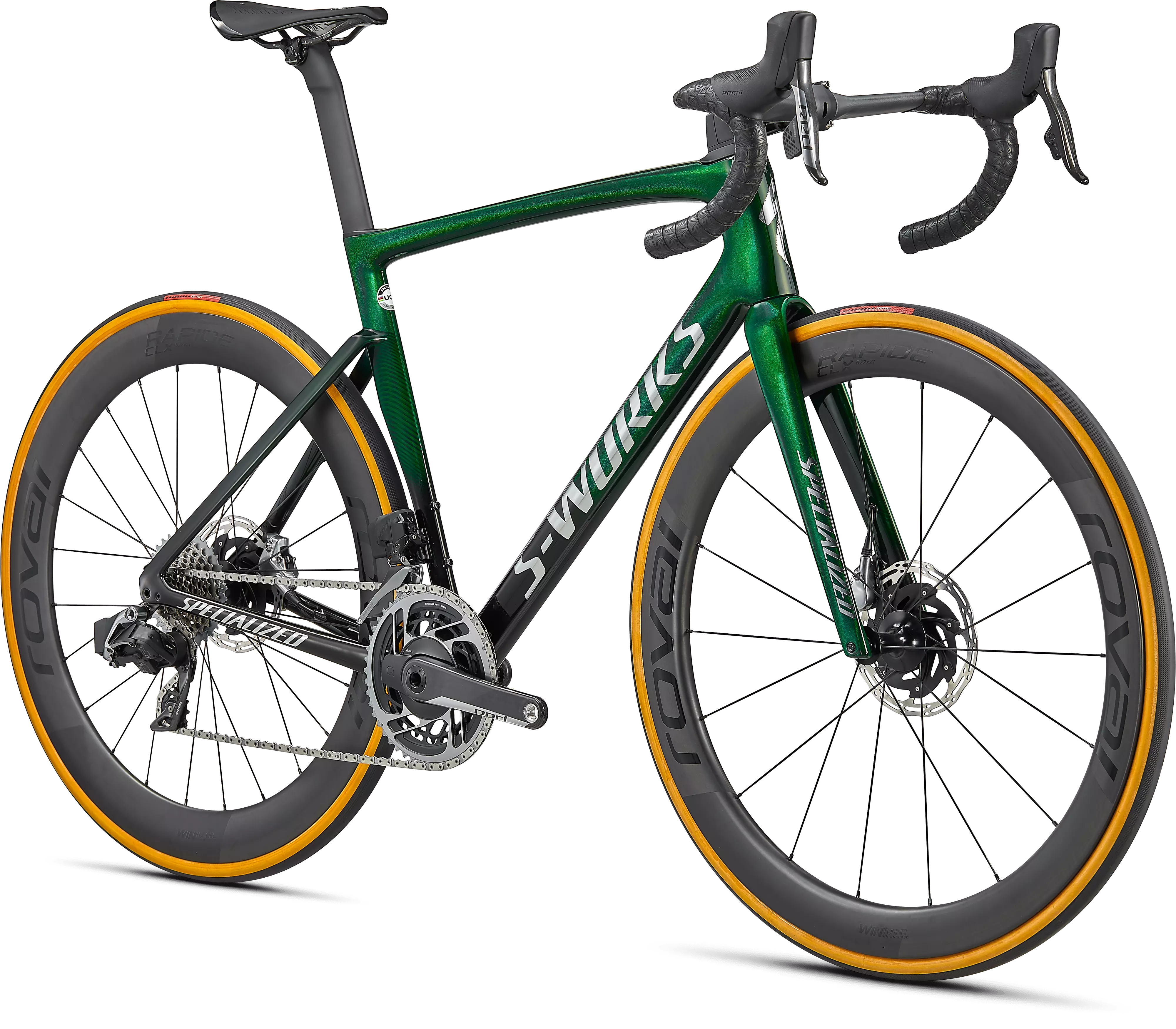 Sólo los mejores componentes pueden acompañar al cuadro más rápido del mundo, por eso encontrarás las virtudes del grupo SRAM RED eTap AXS de 12 velocidades con medidor de potencia, y las nuevas ruedas Roval CLX Rapide de excepcional comportamiento y capacidad aerodinámica. La S-Works Tarmac es una máquina de competición de alto rendimiento de 6,8 kg, recién salida de la caja