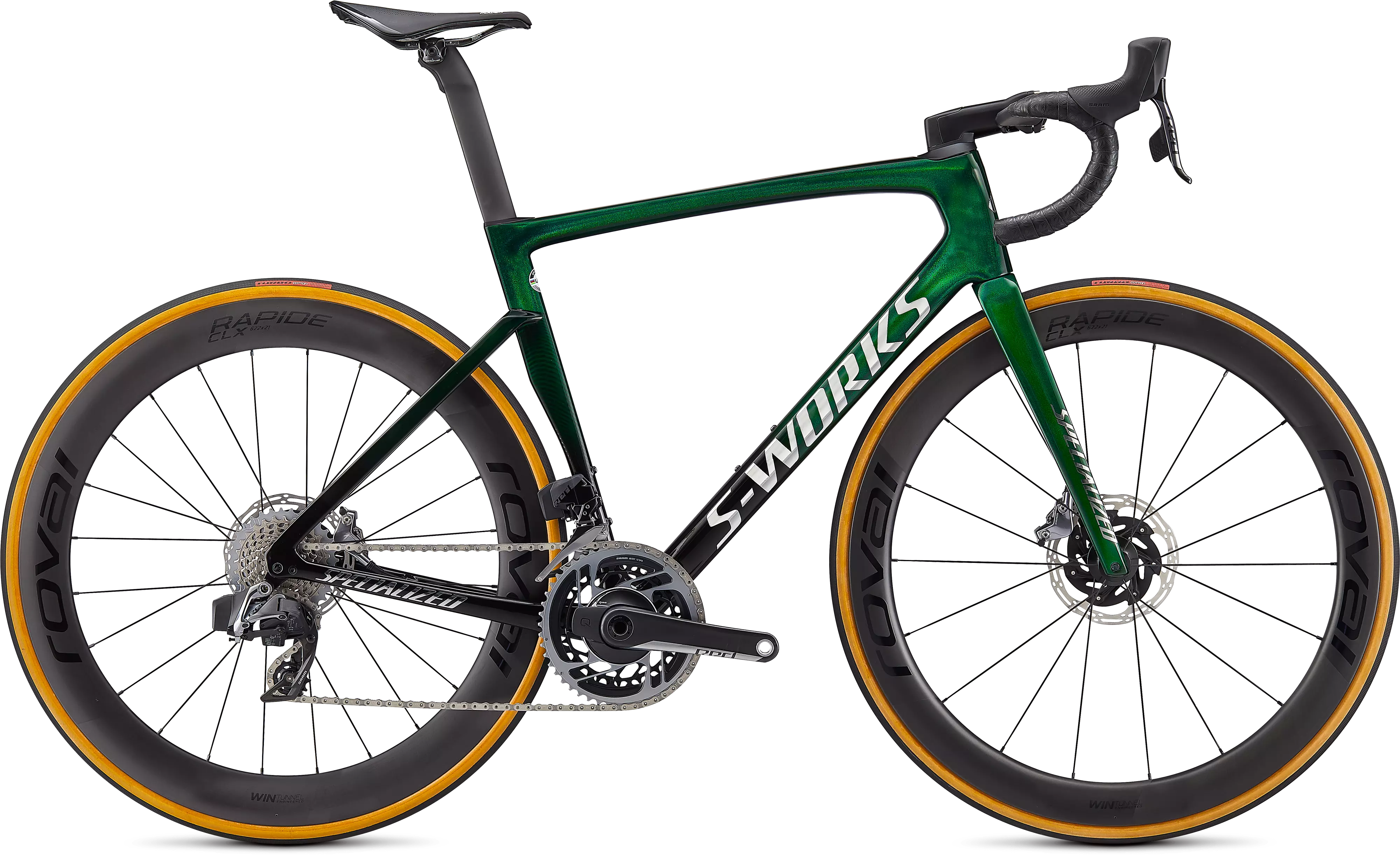 Roval Rapide CLX, 21mm internal width carbon rim, 51mm depth, Win Tunnel Engineered, Roval AFD hub, 18h, DT Swiss Aerolite spokes