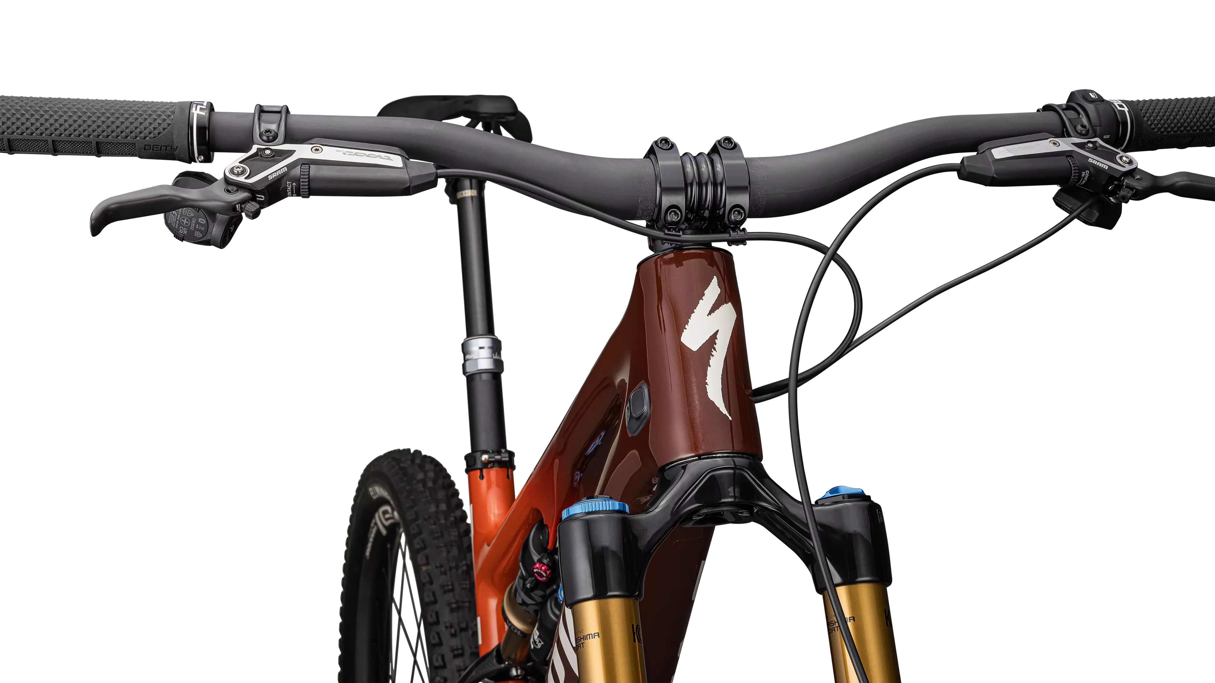 GEOMETRÍA DE CONTROL - El puesto de conducción te centra en la bicicleta, optimizando la tracción y el control en las curvas. El eje de pedalier bajo, el ángulo holgado del tubo de dirección y el desplazamiento reducido de la horquilla mantienen las cosas estables en los terrenos difíciles a la vez que te dan libertad para dominar las curvas. El ángulo de dirección se puede personalizar a 63, 64,25 y 65,5 grados.