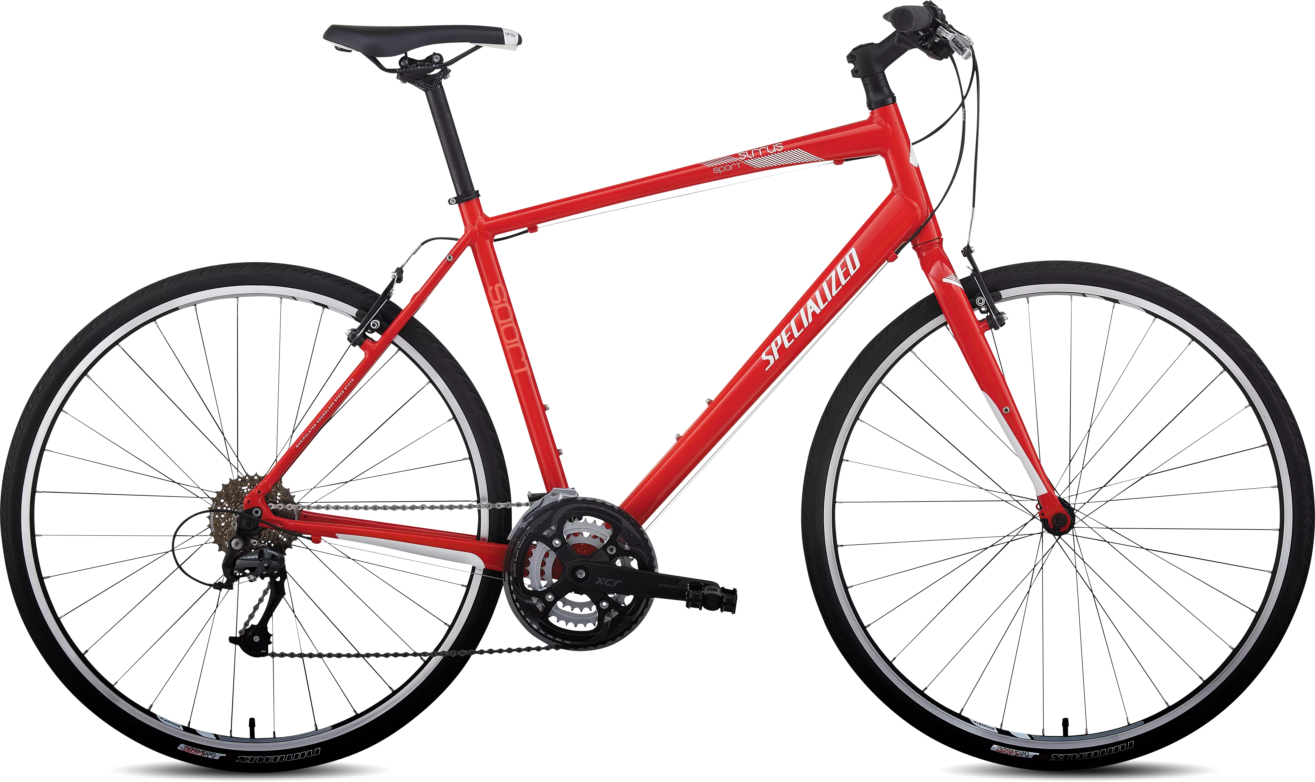 Llantas Sirrus de doble pared mecanizadas ofrecen fortaleza y frenado confiable, a lo que se suma la maza con cassette sellado con rayos inoxidables