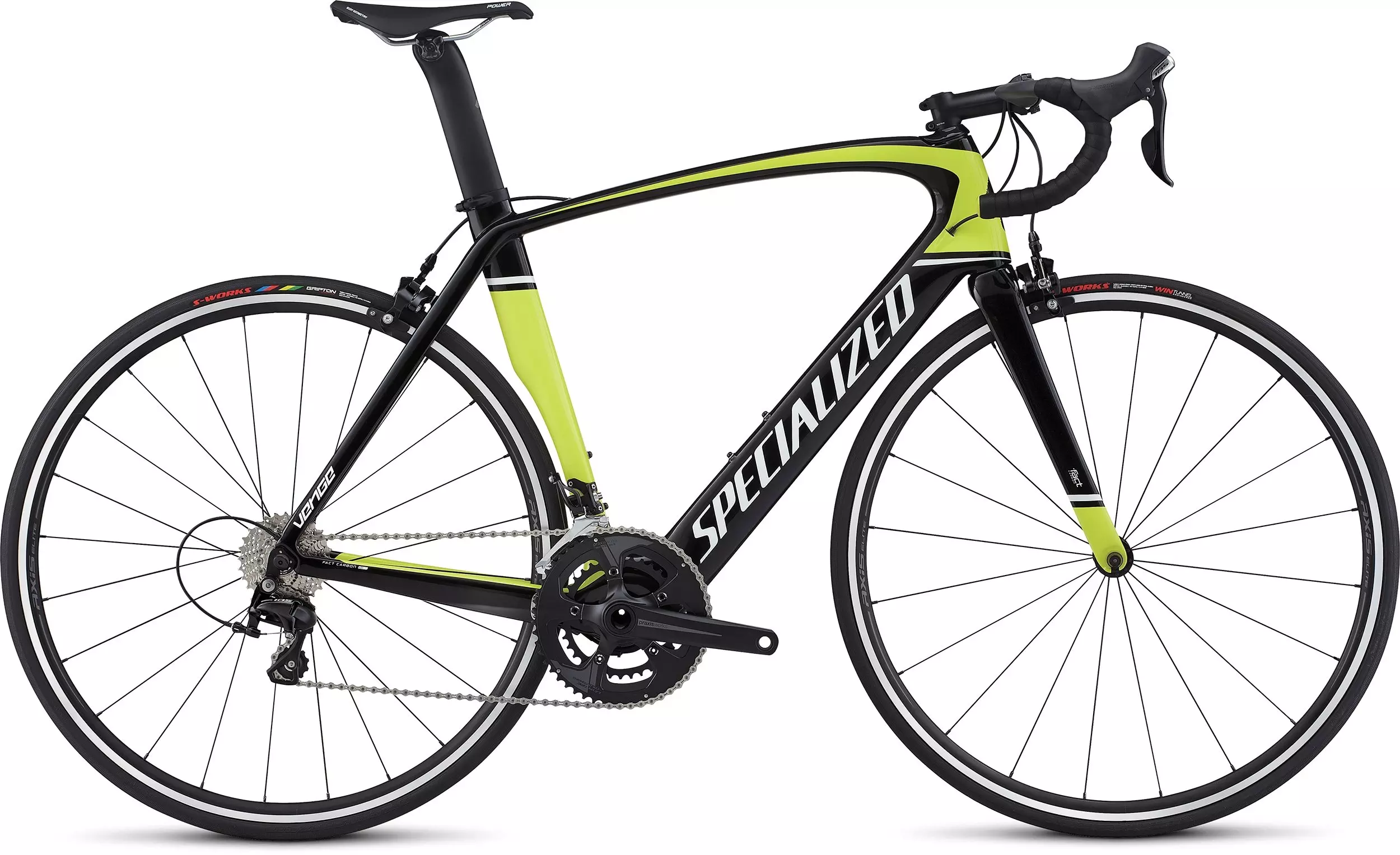 Cuando decimos que ''la aerodinámica lo es todo'', lo decimos en serio. Eso es porque creemos que la aerodinámica avanzada proporcionan una ventaja que va a mejorar cualquier rodada. Y del mismo modo, creemos que todos los ciclistas deben tener acceso a los frutos de nuestro trabajo en el Win Tunnel, es por eso que creamos la Venge Elite. Tiene una construcción superlativa de carbono FACT 10r, potentes frenos de disco hidráulicos, y un marco aerodinámico impulsado que se destaca sin rivales. En nuestro Win Tunnel, cada forma de tubo, borde de salida, y el diseño han sido hechos con un objetivo en mente - la velocidad. la rigidez de la parte delantera se incrementó en un 30% con respecto a la Tarmac. También se dará cuenta de que esta versión opta lejos de las cabina ViAS de la versión S-Works, en lugar de ir con nuestros venerables manubrios S-Works Aerofly y un codo más ''tradicional'', el Pro SL . Por supuesto, esta iteración del disco cambia el juego, ya que está preparada para proporcionar potencia de frenado innegable con ninguna penalización para el perfil aerodinámico, por lo que se obtiene un frenado potente y sin ningún tipo de sacrificio. Luego está la fiabilidad del Shimano 105 de 11 velocidades y las fuertes ruedas de disco Axis Elite que amplifican el rendimiento global de este equipo de carreras. Así que cuando se trata de carreras de velocidad de la línea, esta Venge se niega a quedarse atrás.