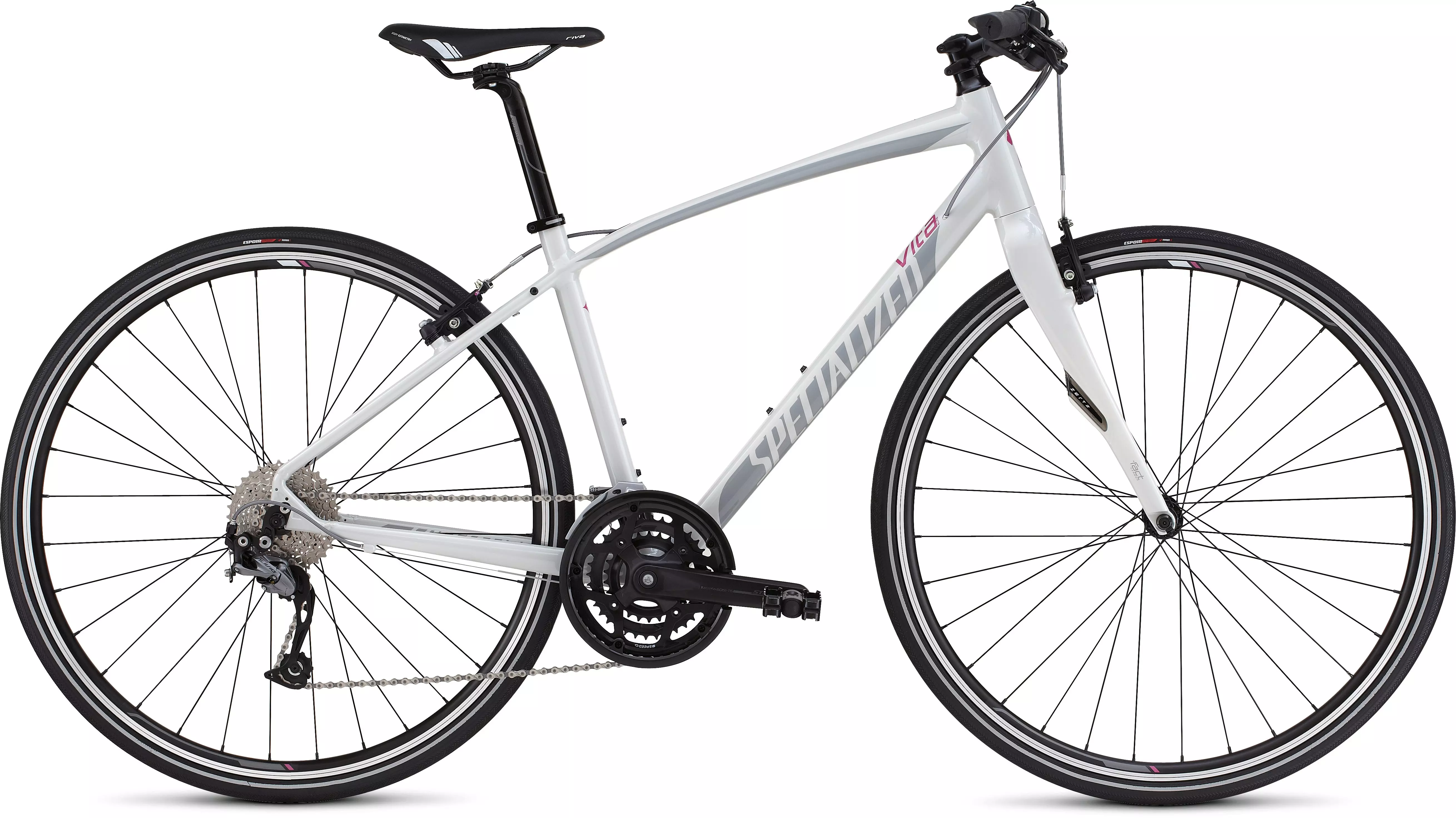 Specialized E5 Premium Aluminum, Women's Fitness Geometry, women's double-butted tube sets, integrated headset, internal cable routing, Plug + Play fender mount, rack mount