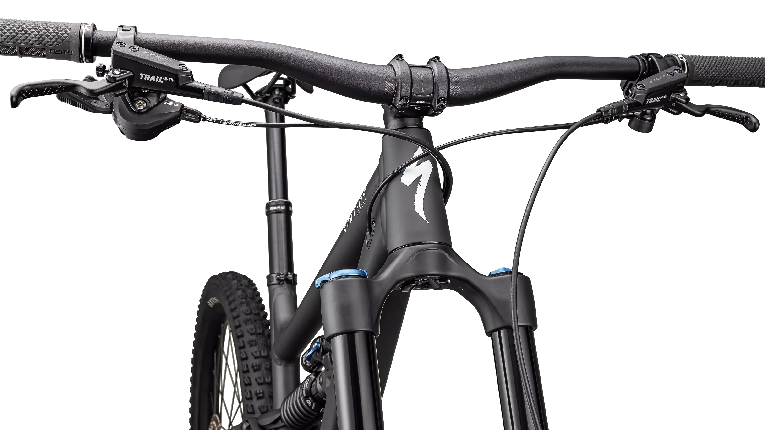 X-Fusion Manic, infinite adjustable, two-bolt head, bottom mount cable routing, remote SLR LE lever, 34.9, S1: 125mm, S2: 150mm, S3-S4: 170mm, S5: 190mm