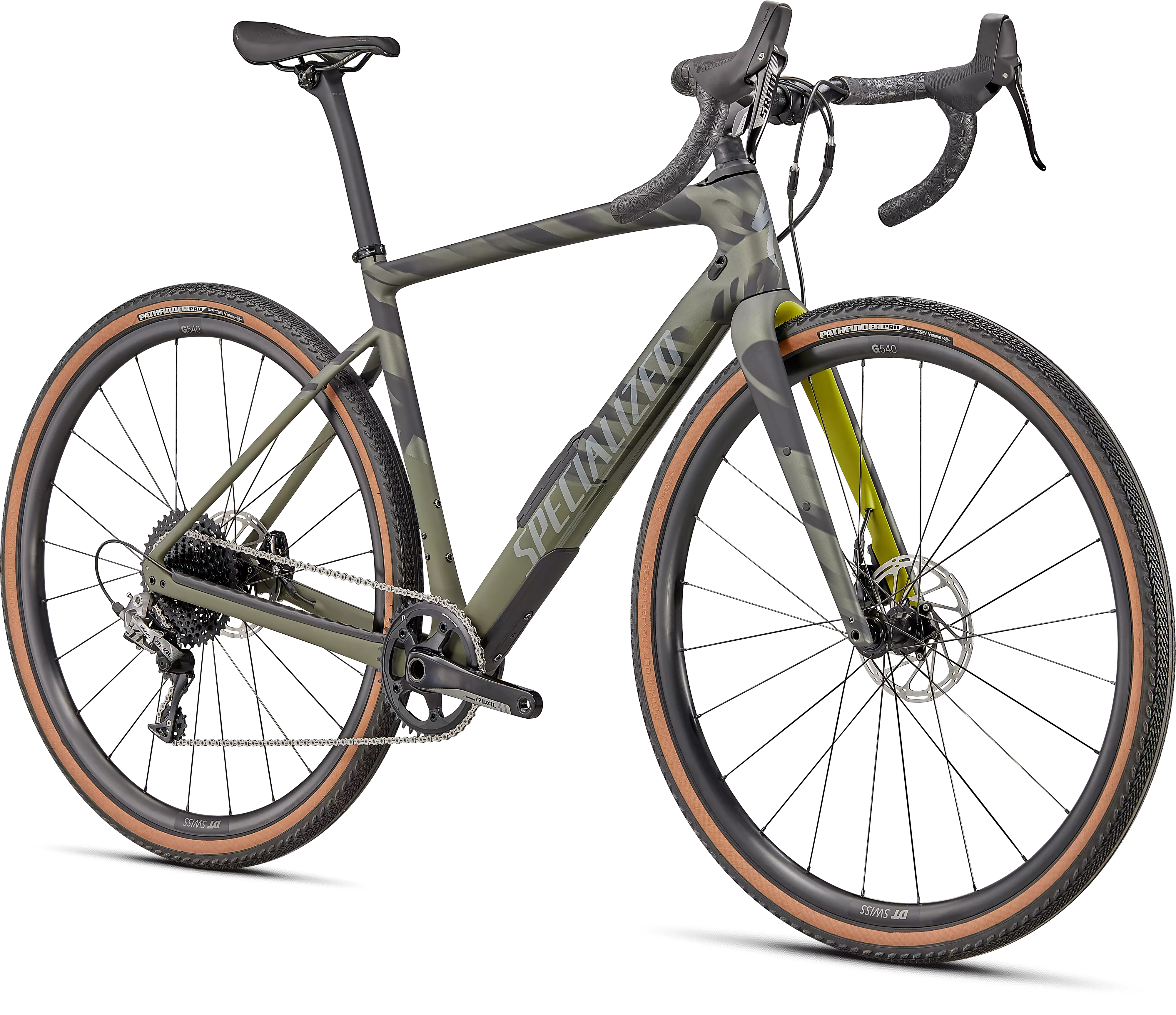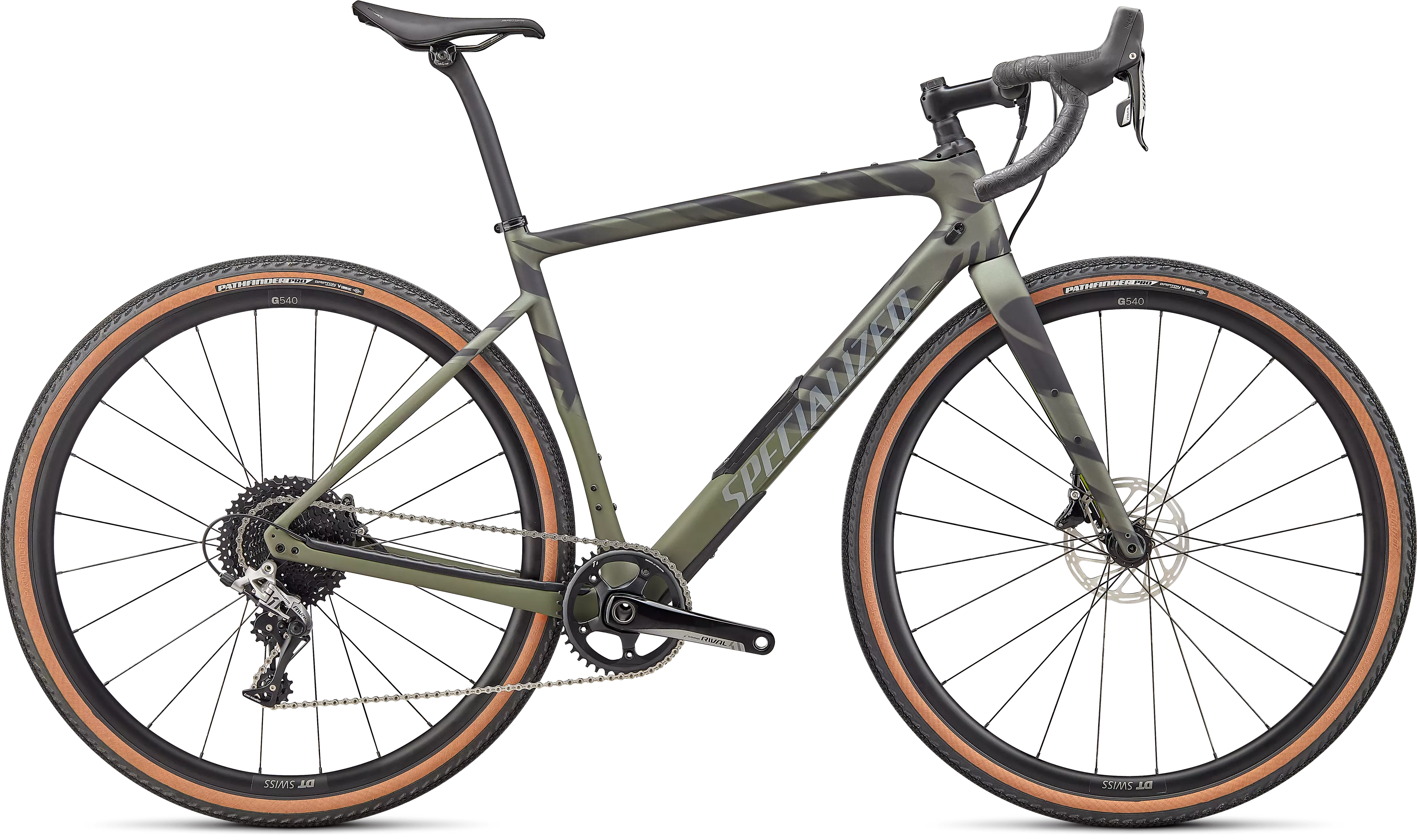 La Diverge Comp Carbon presenta el mismo cuadro de carbono FACT 9r y Future Shock 2.0 que la Pro, pero con el grupo de gravel SRAM Rival 1 1x11 de cambio mecánico. Las ruedas de aluminio DT Swiss G540 te mantienen rodando de manera eficiente, mientras que los neumáticos Pathfinder Pro de 42 mm, ganadores de Kanza, ofrecen rendimiento en asfalto liso, caminos de tierra y pistas de grava. Para darle a la Diverge Comp una conducción perfectamente equilibrada, montamos la tija de sillín Terra de Roval.