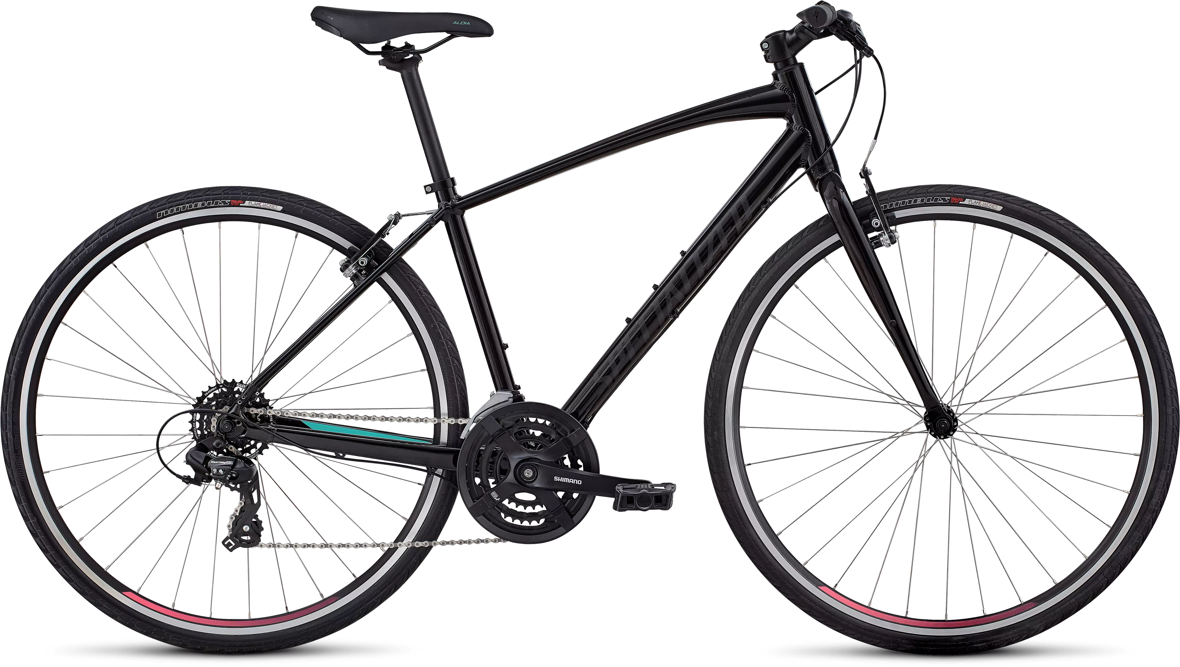 Specialized A1 Premium Aluminum, Fitness Geometry, fully manipulated butted tubing, external cable routing, V-brake, quick-release, rack/fender mounts