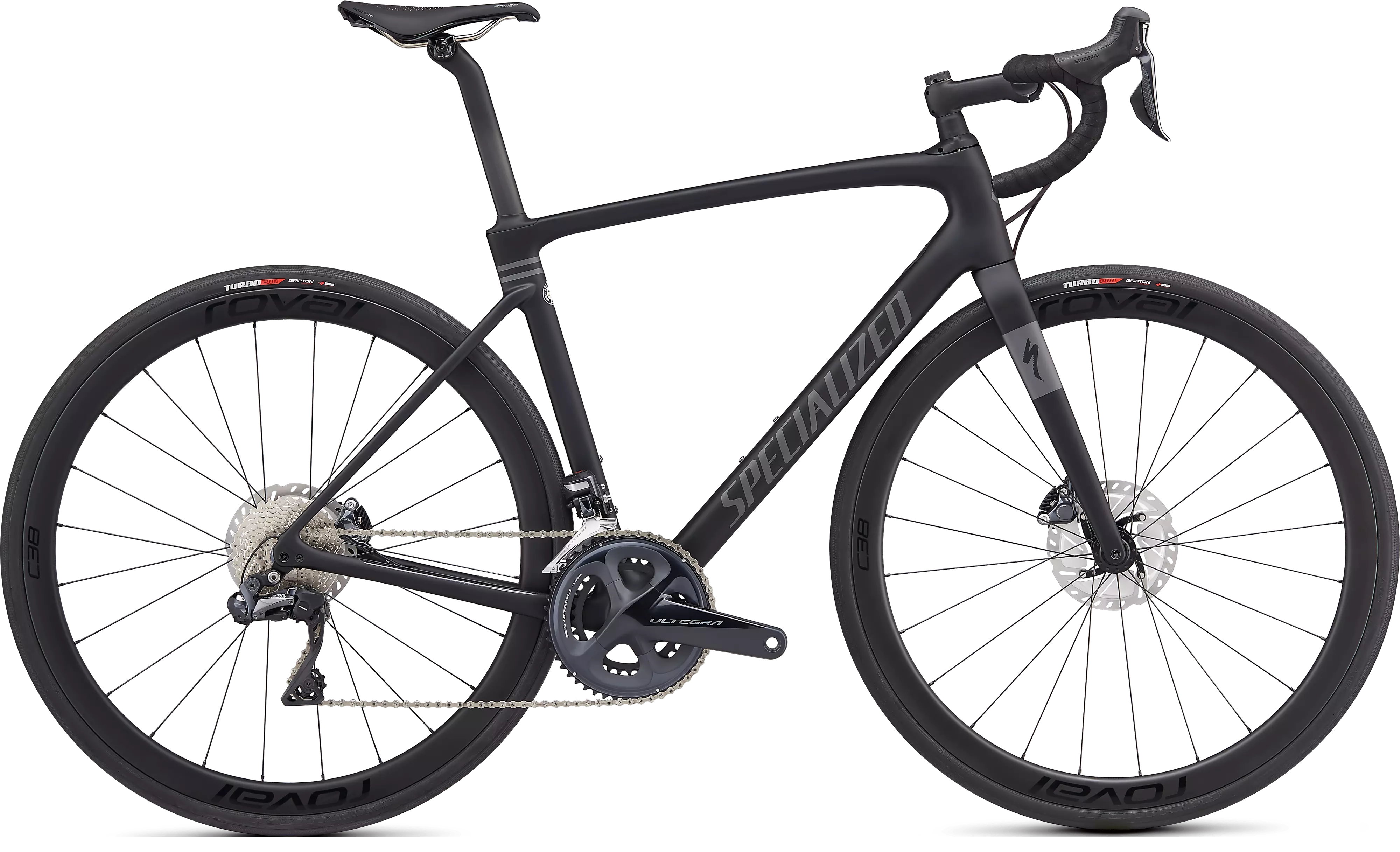 Das Roubaix Expert ist mit der Shimano Ultegra Di2, leistungsstarken hydraulischen Scheibenbremsen, sowie einem superschnellen Roval C 38 Disc Laufrädern ausgestattet.