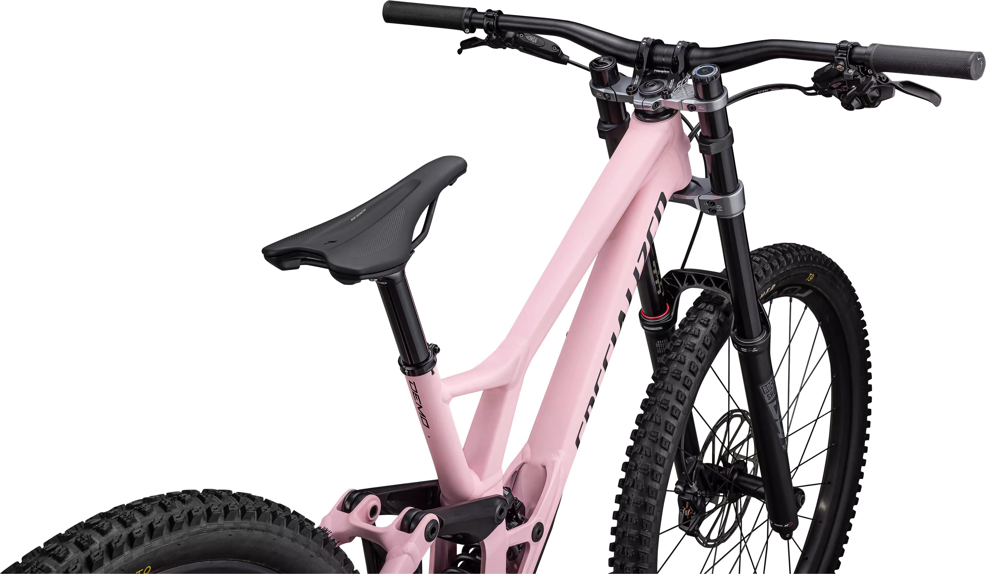 SRAM Code RS four-piston brakes front and rear give you the power to slow down with almost telepathic immediacy, while the Demo Expert’s suspension platform injects just the right amount of anti-rise into the kinematics equation to keep your weight low and centered, maximizing rear-wheel traction when you need it most.
